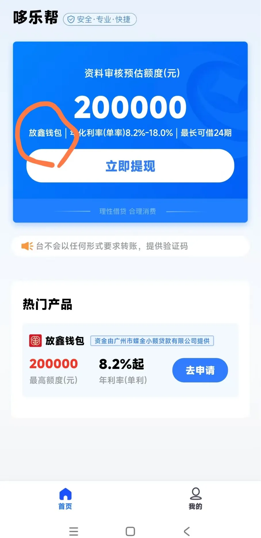 小编下载并注册哆乐帮发现,哆乐帮APP专为“放鑫钱包”引流,没有其他借款产品。