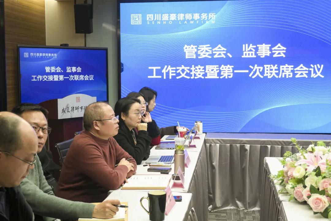 共工社-共工财经局12月27日电(雷良)2025年12月25日下午,四川盛豪律师事务所管委会、监事会工作交接暨第一次联席会议顺利召开。会议由监事会监事长刘波主持,管委会主任谭明权及新一届管委会、监事会、秘书处班子成员齐聚一堂,以工作交接为契机,明确职责分工、凝聚发展共识,为律所新年工作开好局、起好步筑牢基础。