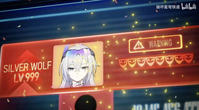 直接出现银狼LV.999这个名字是在4.0的版本PV「满月是神不在的时间」,公司这边提示星际威胁系数监控波动异常,翡翠正在监督员工找源头,屏幕上显示的英文就是银狼LV.999,只不过翡翠说“朋克洛德的狼尊回来了”,让玩家误以为银狼sp会叫狼尊之类的,没想到让人忽略了屏幕上的真名。