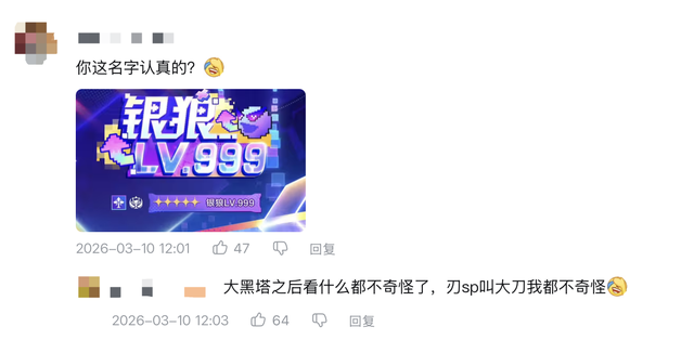 有玩家觉得这个名字是延续了欢愉命途的整活风格,也有玩家觉得崩铁在sp形态取名上就是这么随意,毕竟黑塔的真身就叫大黑塔,完全体银狼升满级后直接加上LV.999也就不稀奇了。