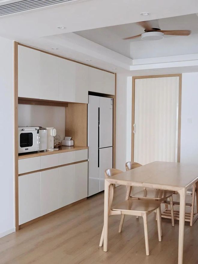 嵌入式餐边柜设计,主要得益于背后的墙体可以拆除,彻底规避了柜体对餐厅空间的影响。