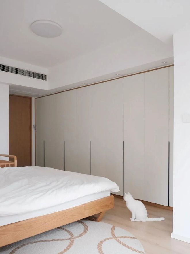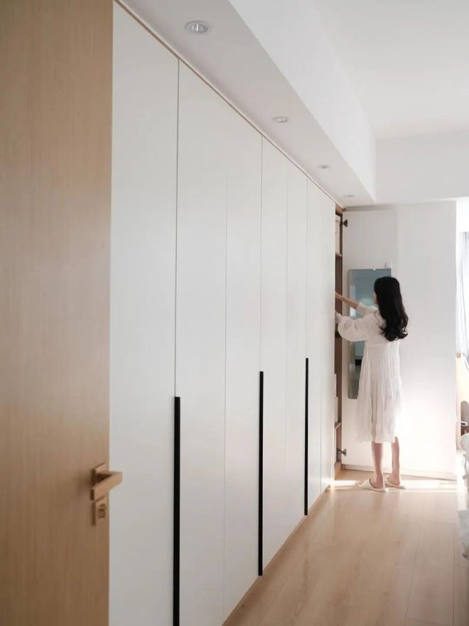 衣柜,算是家里最核心的收纳柜,在没有衣帽间的情况下,将衣柜安排在床尾处,可以最大化提升收纳力。
