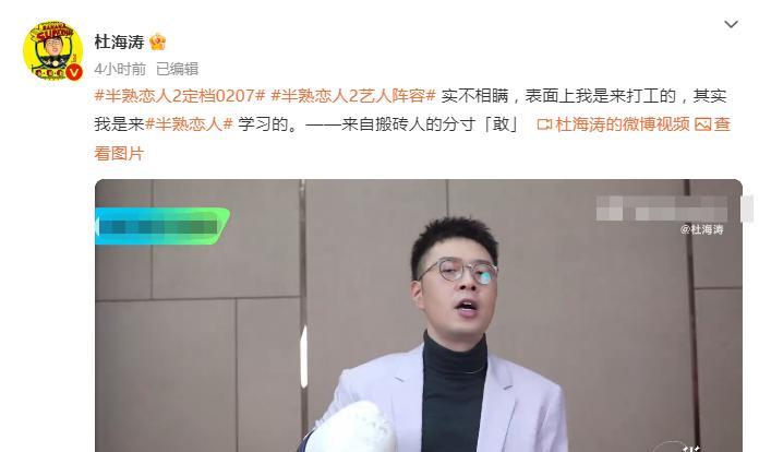 1月30日,杜海涛晒出了一段《半熟恋人2》定档的视频,为新节目打call。