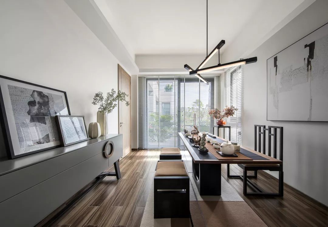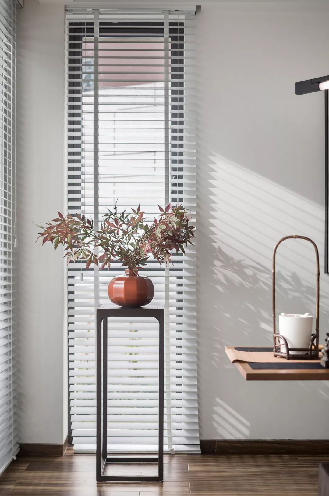 ▲百叶帘作为窗帘的布置,还有禅意端庄的花瓶布置,也都为空间添增了不少情趣雅致的档次感。