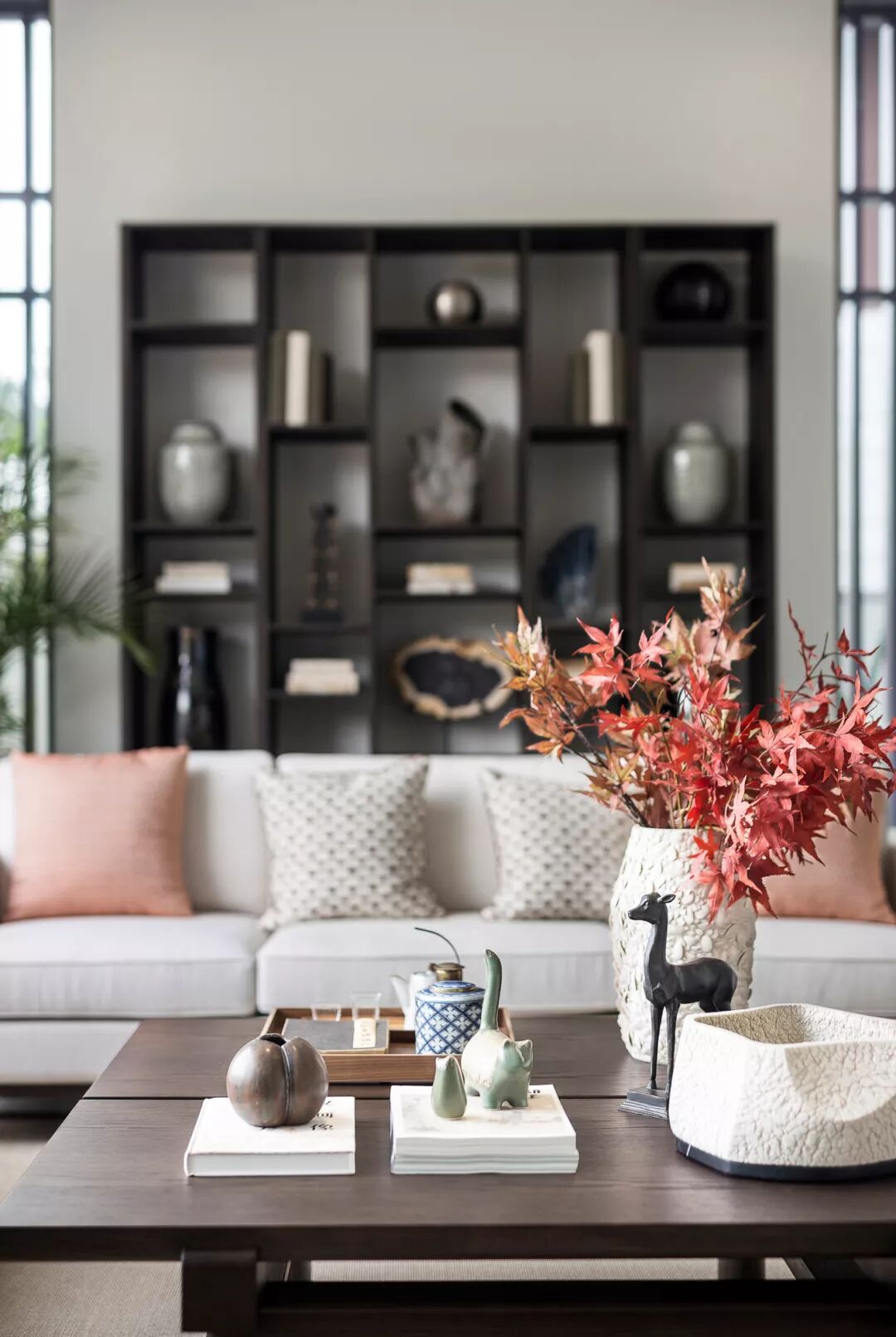 ▲茶几上端庄的花瓶、茶具与摆饰,也让空间不经意间显得更加端庄雅致。