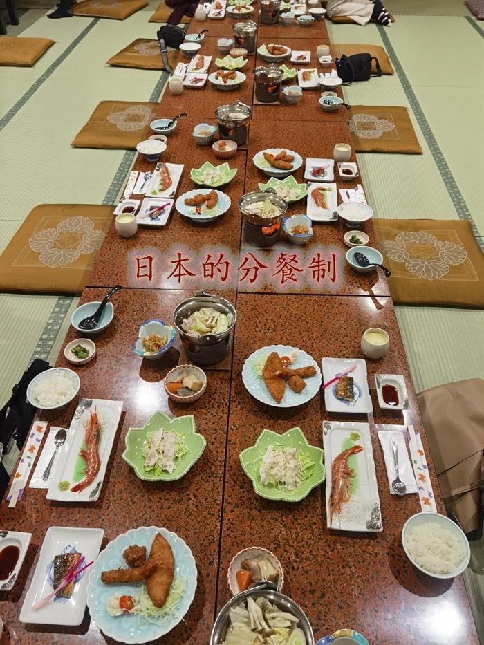 这回到日本也去体验了日本的饮食文化。    首先是分餐制,就是每次就餐都是一人一份,每份份量不多,但品种不少。看着一堆小碗小碟摆在自己眼前,顿感这样吃饭很有意思,食欲大开!这样吃饭,干净卫生,互不干扰,也不浪费食物。