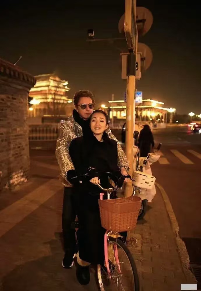 巩俐开心的像个孩子,一直黏着雅尔,给雅尔拍照,两人共骑一辆单车,成了最美的风景线!