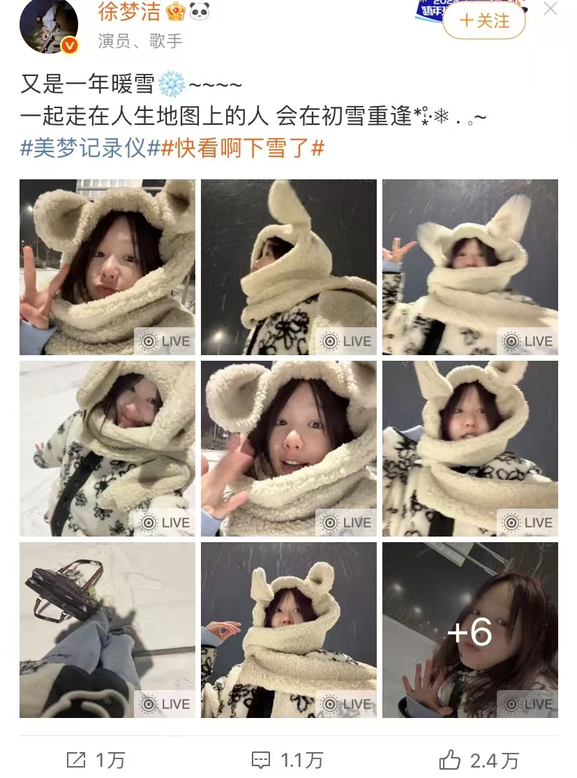 何与算是特别帅特别有氛围感的一组照片了,每一张都让人想起了《鬼怪》。一米八几的大高个,那个女生能不心动?不是所有雪都像初雪般浪漫,所以大家都很激动,拍的每一张图片都很多唯美。感谢大自然的馈赠,瑞雪兆丰年,希望2026年一切顺利。