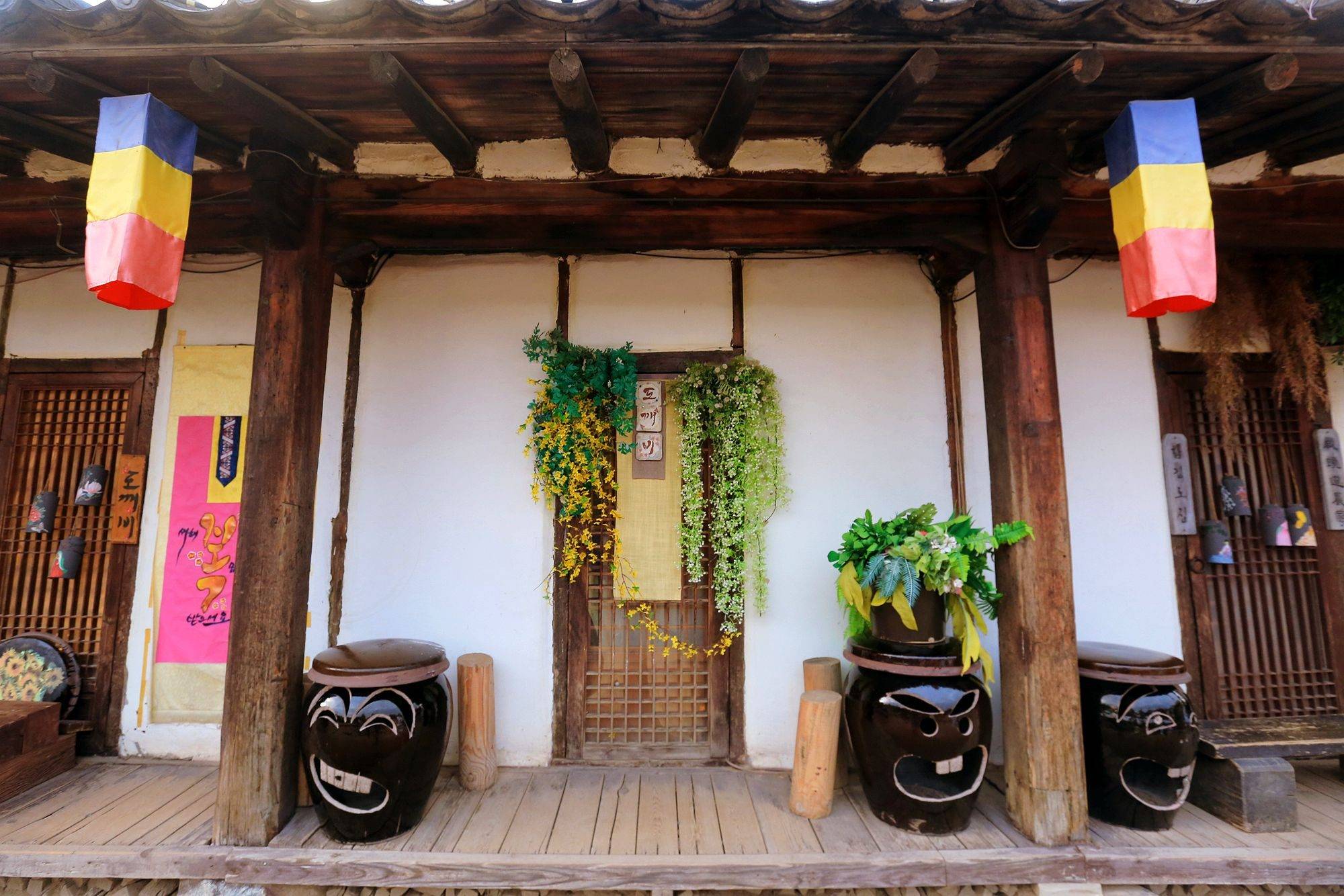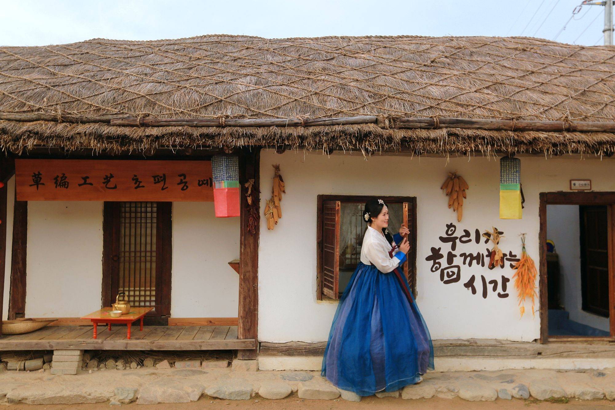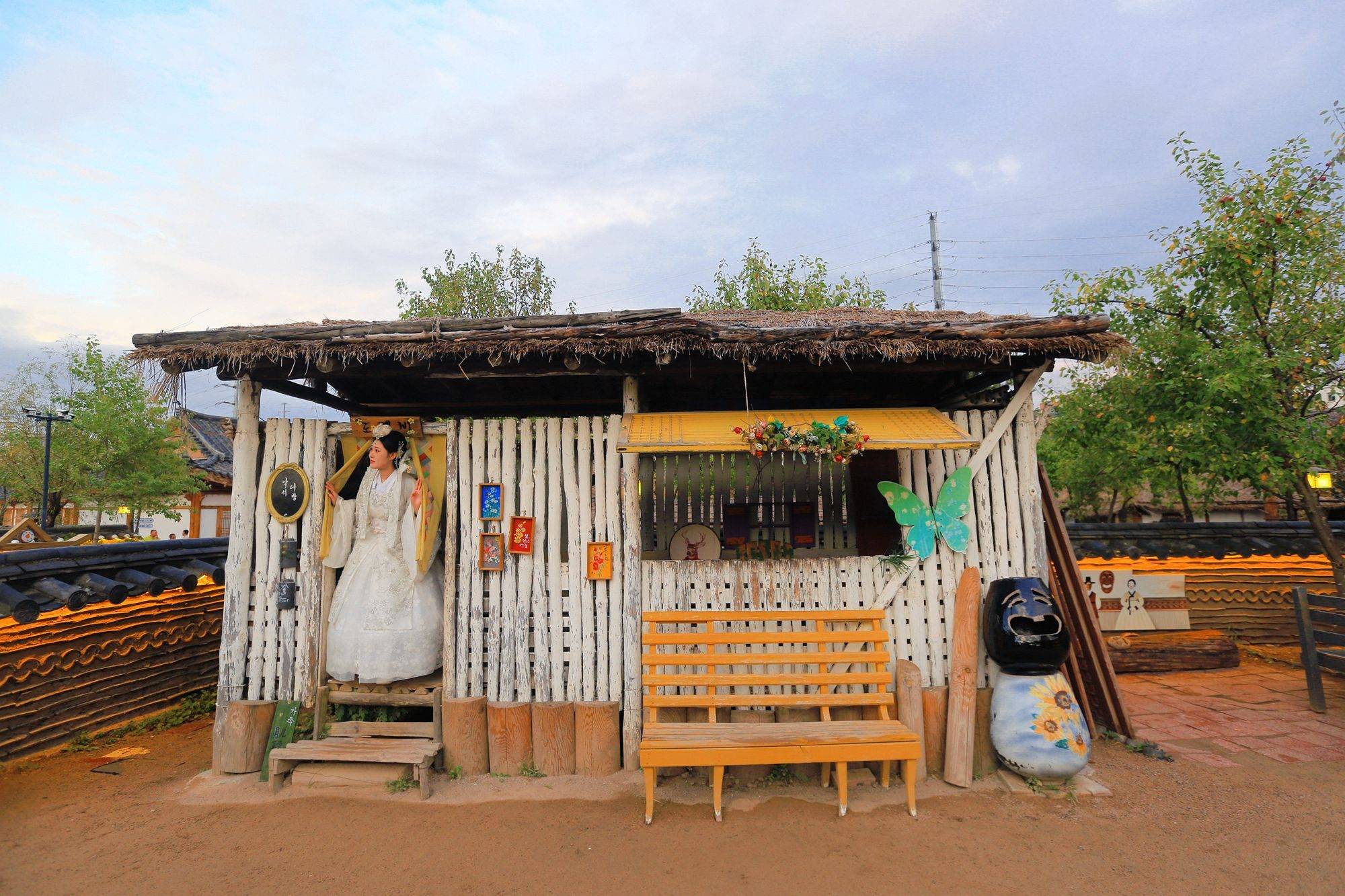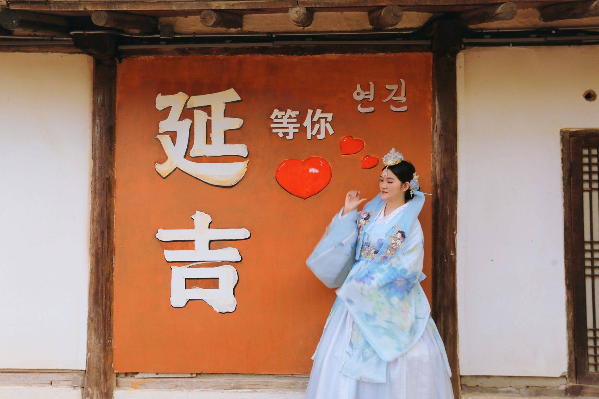 对于女孩子来说租一套美美的韩服游园才是此行的灵魂玩法,无论是色彩绚烂的华丽款还是素雅经典的蓝白款,在韩屋、陶罐阵、民俗墙前拍照,都能分分钟拍出氛围感大片。