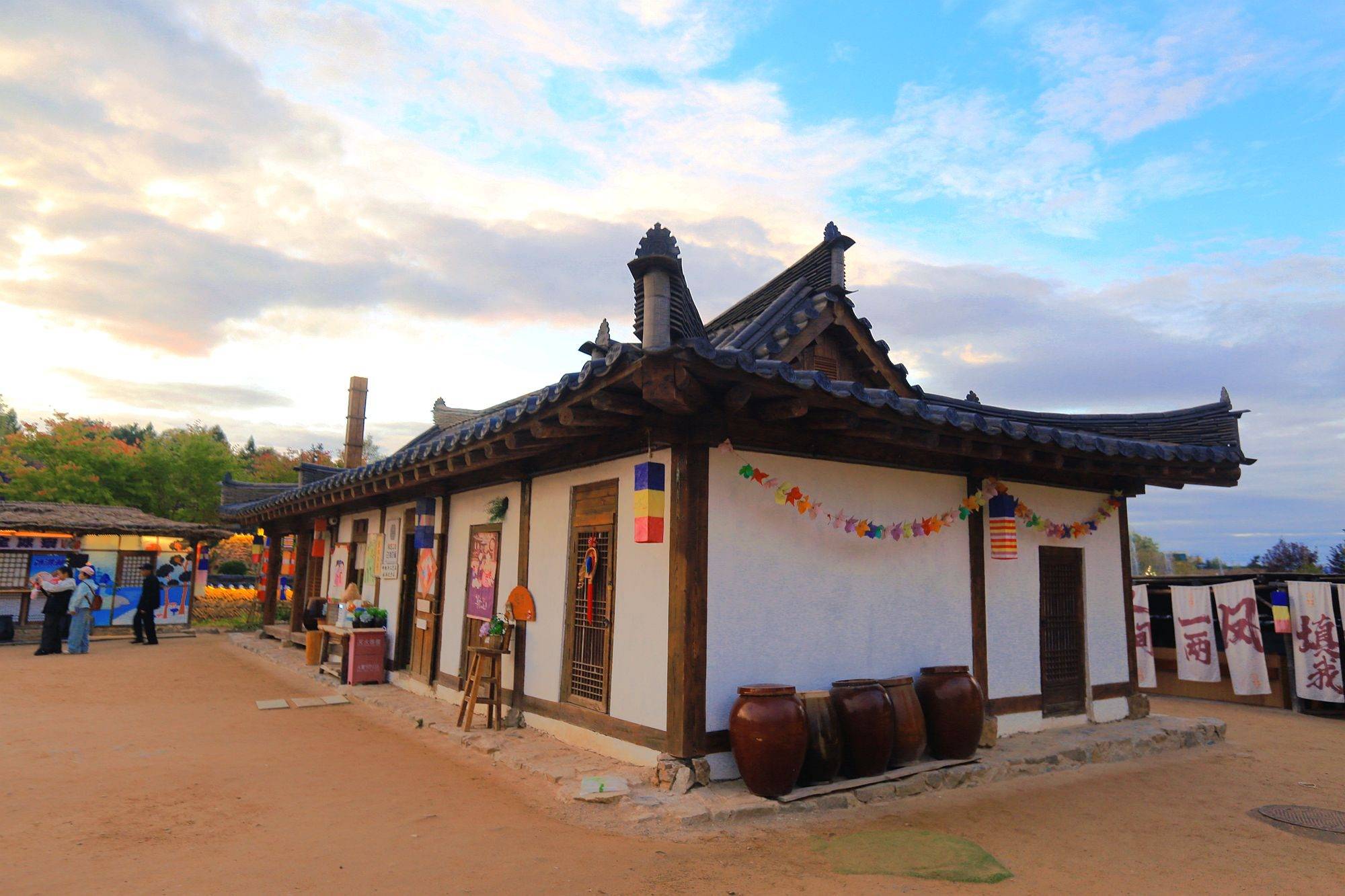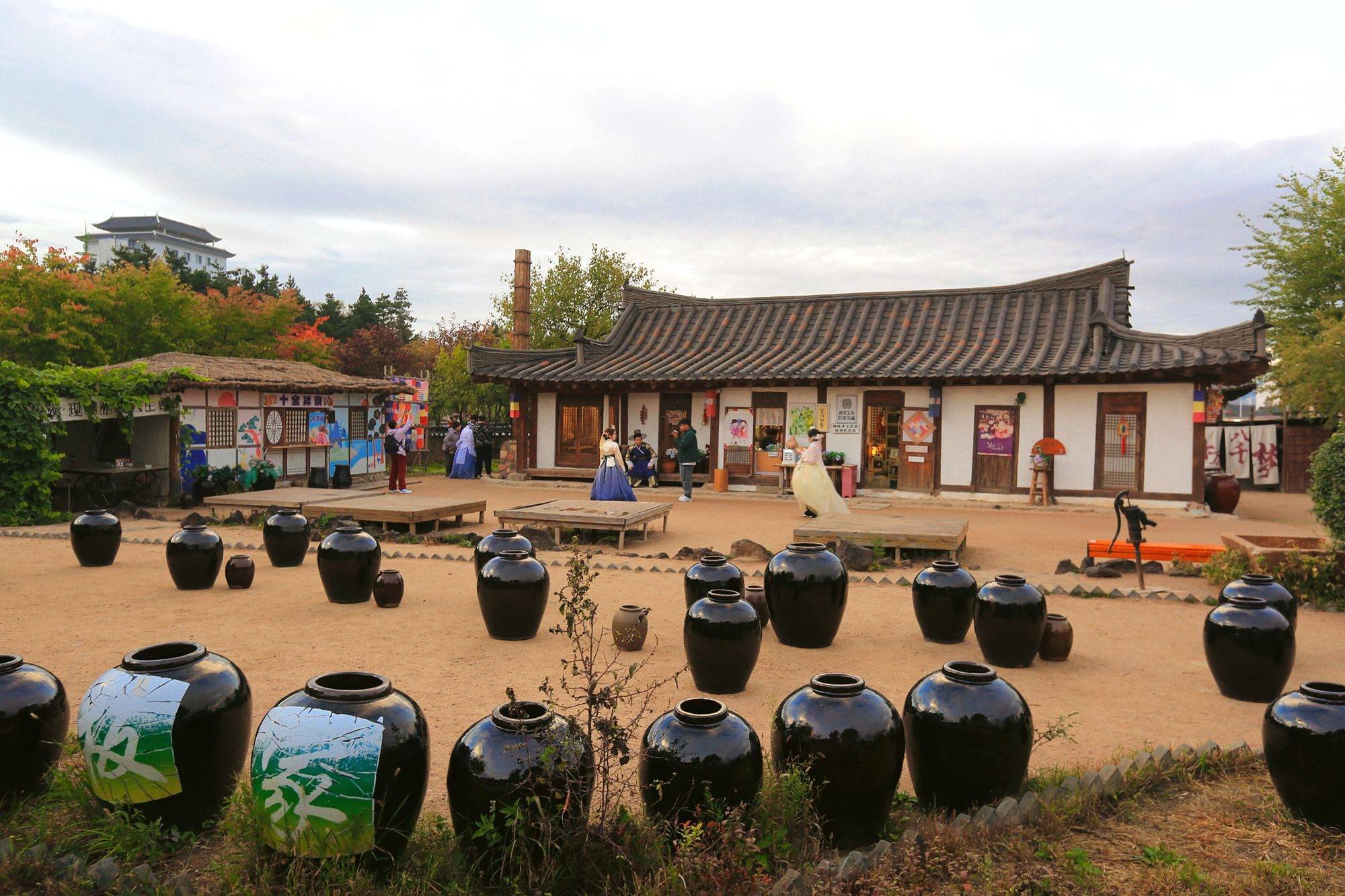 朝鲜族传统“瓮器”摆放在院落里,高低错落,穿上韩服在其中打卡拍照,如同刚从古装韩剧里走出的人,满满的田园民俗感。