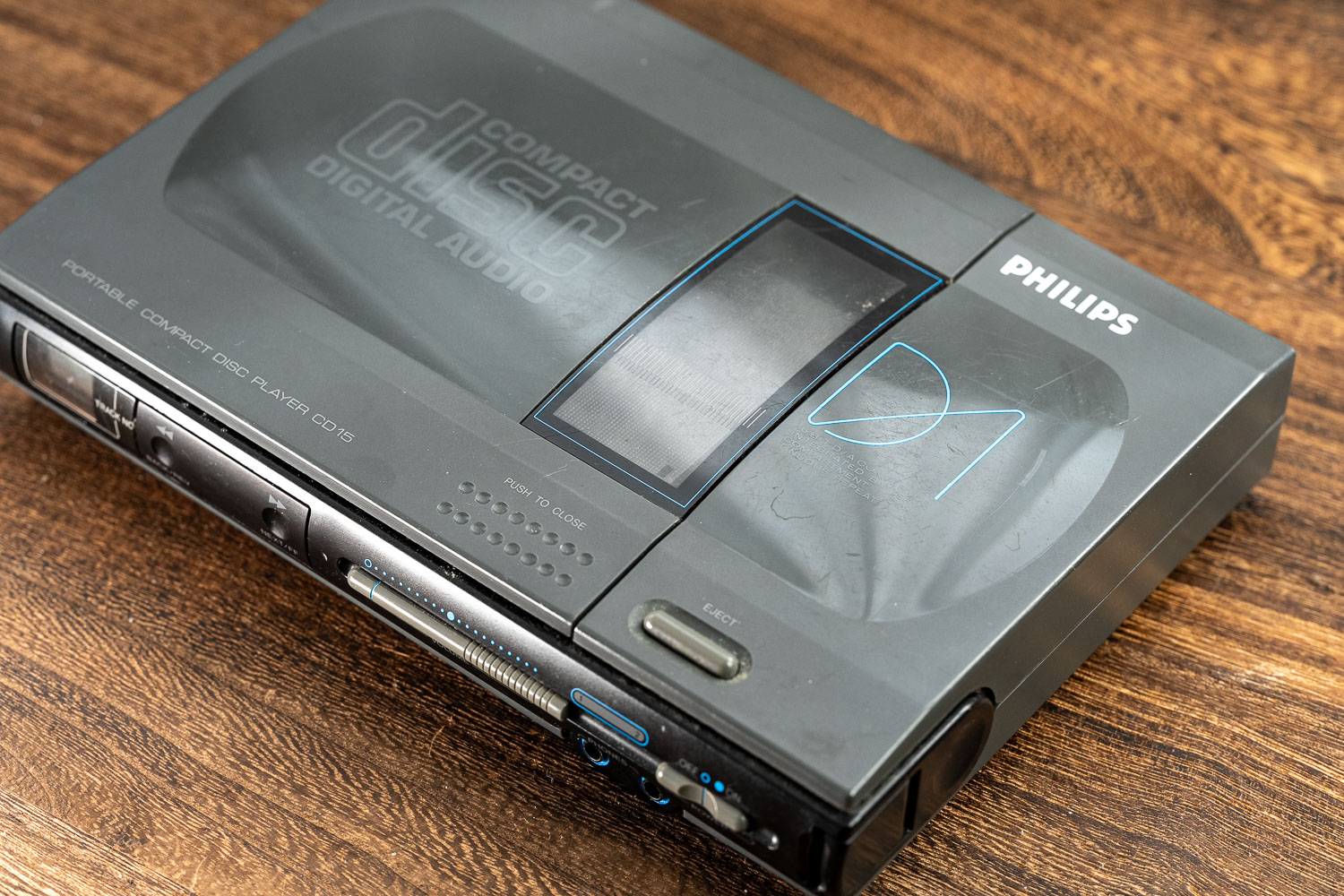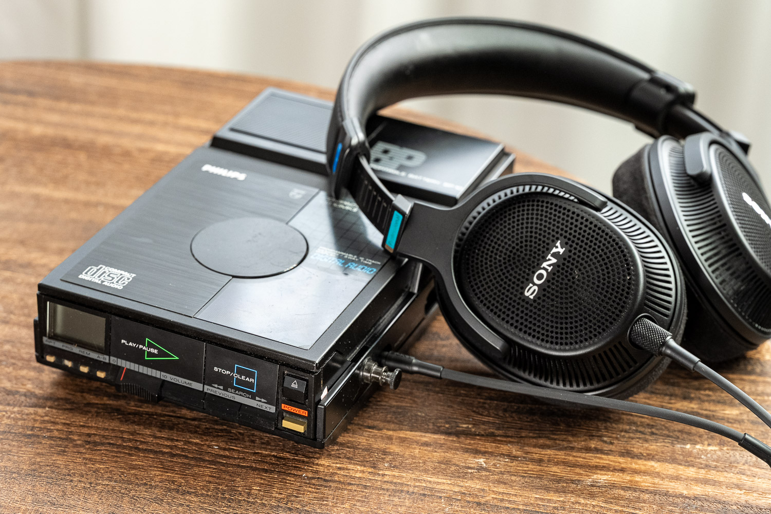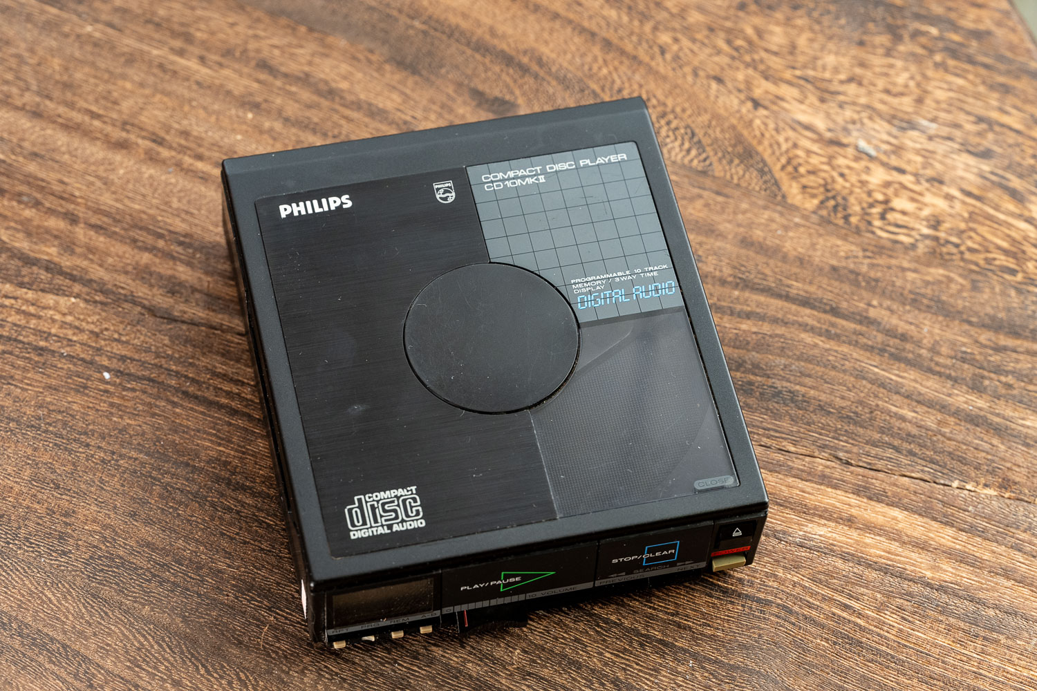 飞利浦CD15是我心目中老机器里的天花板、也是直到现在都值得一听的机器,它由马兰士团队主导设计、耳放部分在当年属于台机级别的硬件配置,解码用了一片Ti家经典的PCM55 16-bit芯片。这台机器的颜值我觉得比较普通、而且体积硕大,基本上脱离了“便携”范畴。这里有个很有趣的回旋镖,那就是很多对老CD机明明一知半解却还盲目迷信的用户疯狂在我的文章评论区里抨击现在的CD机做的大、不够便携,我想问问你,CD15你当年喷过没?另外,CD15和CD10MKII的电池都需要6节硕大的2号电池,但它的供电要求确实比之前的几台机器要高,达到了9V的规格,也说明在设计目标方面,CD15/CD10系列都是奔着便携CD机领域里最顶尖的驱动力水平去的,但遗憾的是我手里的CD15并没有电池仓,只能用DC供电来听,但从声音表现来说,CD15在DC模式下的听感极佳、没有明显短板,这一点与下文的CD10MKII有显著区别。