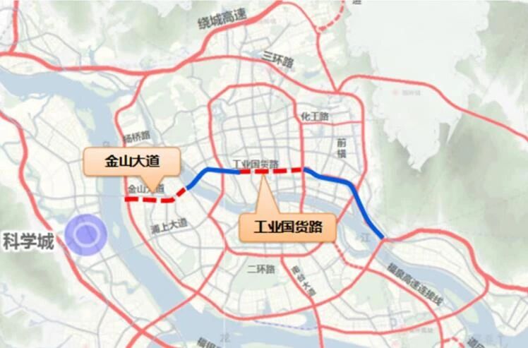 这就是所谓的东2.5环,南起鳌峰路,北至三环园中互通,长5.285公里,宽40米至70米,采用“高架+辅路”方案,沿线在鳌峰路、远洋路、前屿路、化工路及鹤林路处设5处立交及上下匝道。