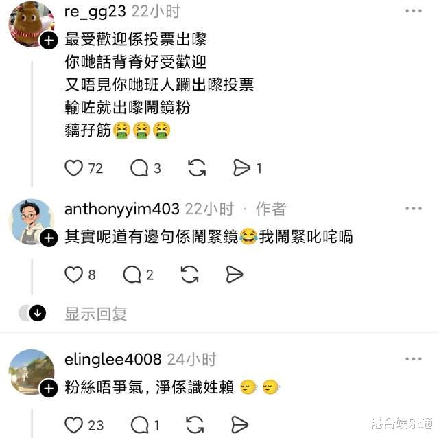 “最受欢迎奖是投票选出来的,你们说《用背脊唱情歌》好受欢迎,但又不见你们出来投票,输了就出来怪镜粉(MIRROR粉丝),xxx。”一位粉丝反驳说。