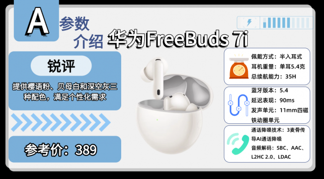 好评机型五:华 为F reeBuds 7i蓝牙耳机