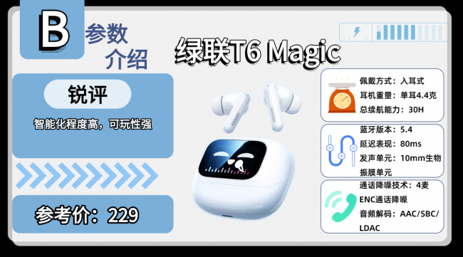 好评机型十:绿 联T 6 Magic蓝牙耳机