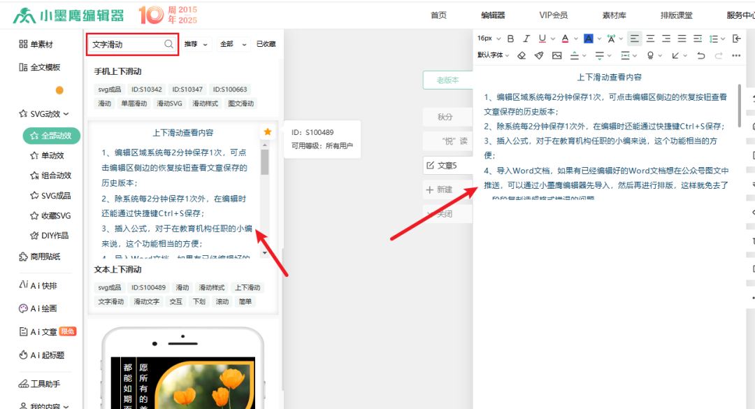 全程不用代码、不用复杂操作,新手也能轻松上手。给大段文字加上滑动动效,不仅版面更灵动,读者阅读也更有节奏,赶紧用起来吧!