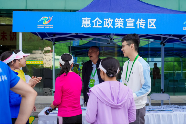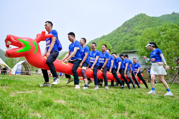 在户外拓展环节,“珠行万里”“旱地龙舟”等趣味项目火热开展,让政企双方在协作互动中增进了互信。活动终点处,柞水木耳深加工产品、非遗十三花宴等特色展品琳琅满目,吸引众多客商驻足品鉴。身着统一标识的志愿者化身“产业讲解员”,热情细致地为客商解读产品背后的产业链发展前景。团队竞技活动不仅打破了政企沟通的壁垒,也生动诠释了柞水“办一场赛事、兴一座城市、惠一方百姓”的发展理念。