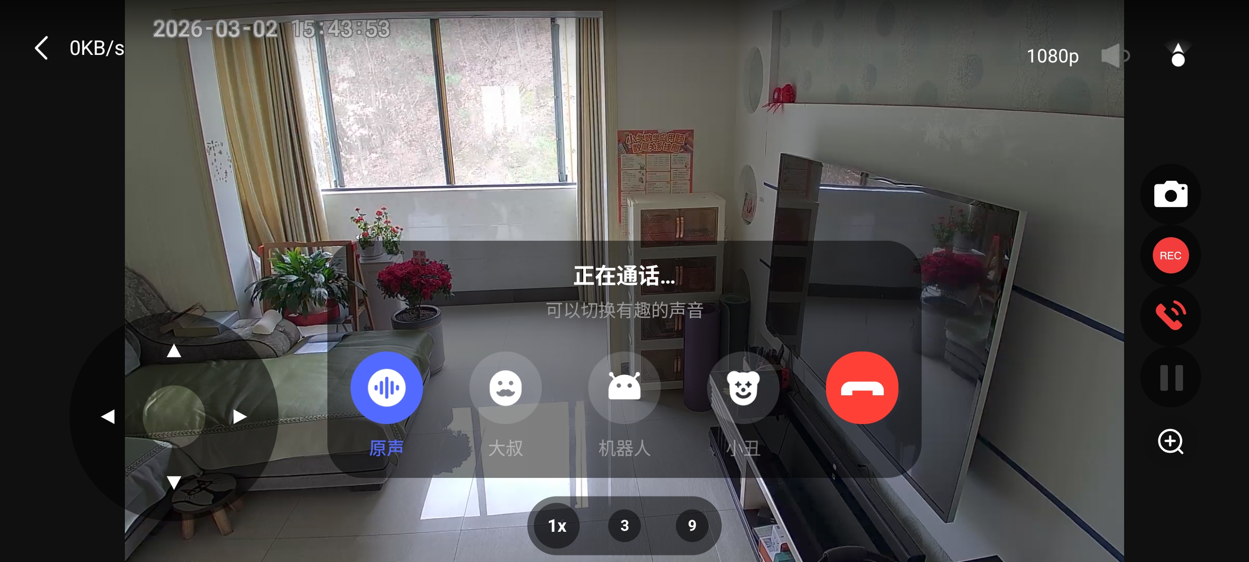 语音对讲还能一键切换三种音色音调,换成机器人或小丑的声音让我与孩子多了一种远程亲子游戏的可能,而换成大叔的声音则方便和快递、外卖员沟通,伪装身份多一份安全保障。
