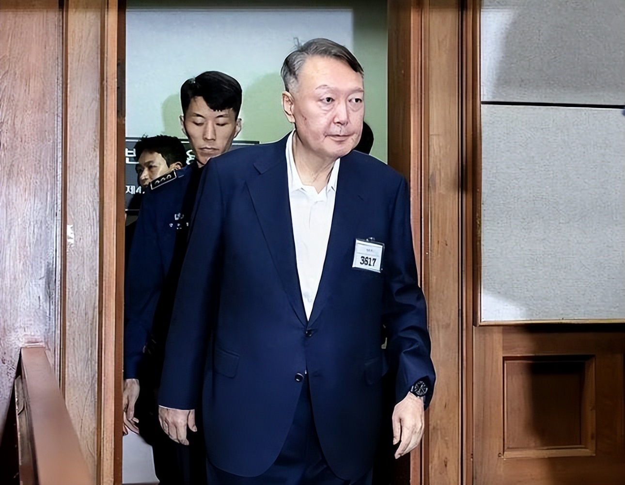 这一点,从庭审结束后的一个细节就能看出来。经过30多分钟的询问,金建希在下午2点40分左右被带离法庭,当她被狱警带走时,现场媒体捕捉到了一个微妙的画面:尹锡悦看着自己的律师,露出了一个淡淡的微笑。