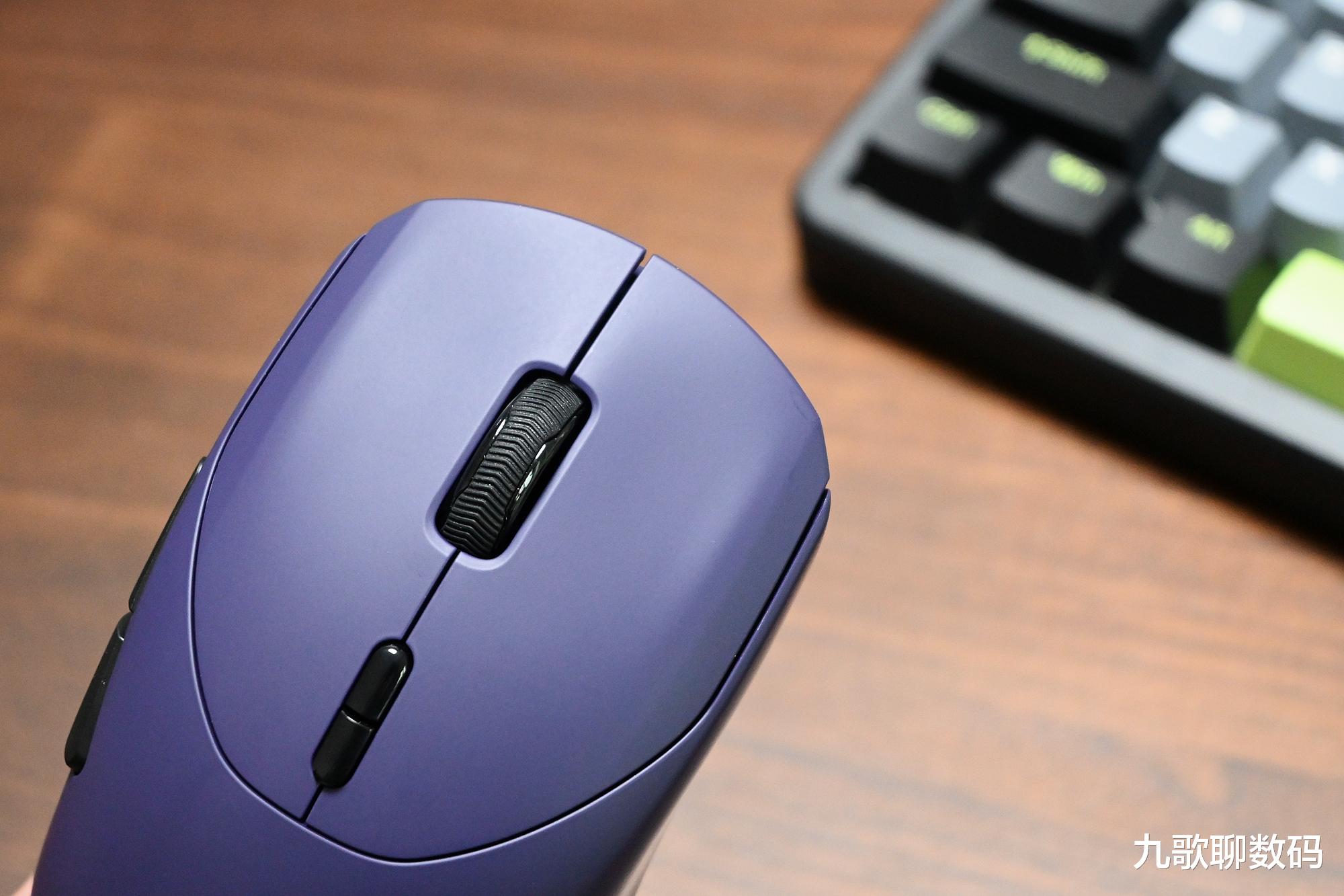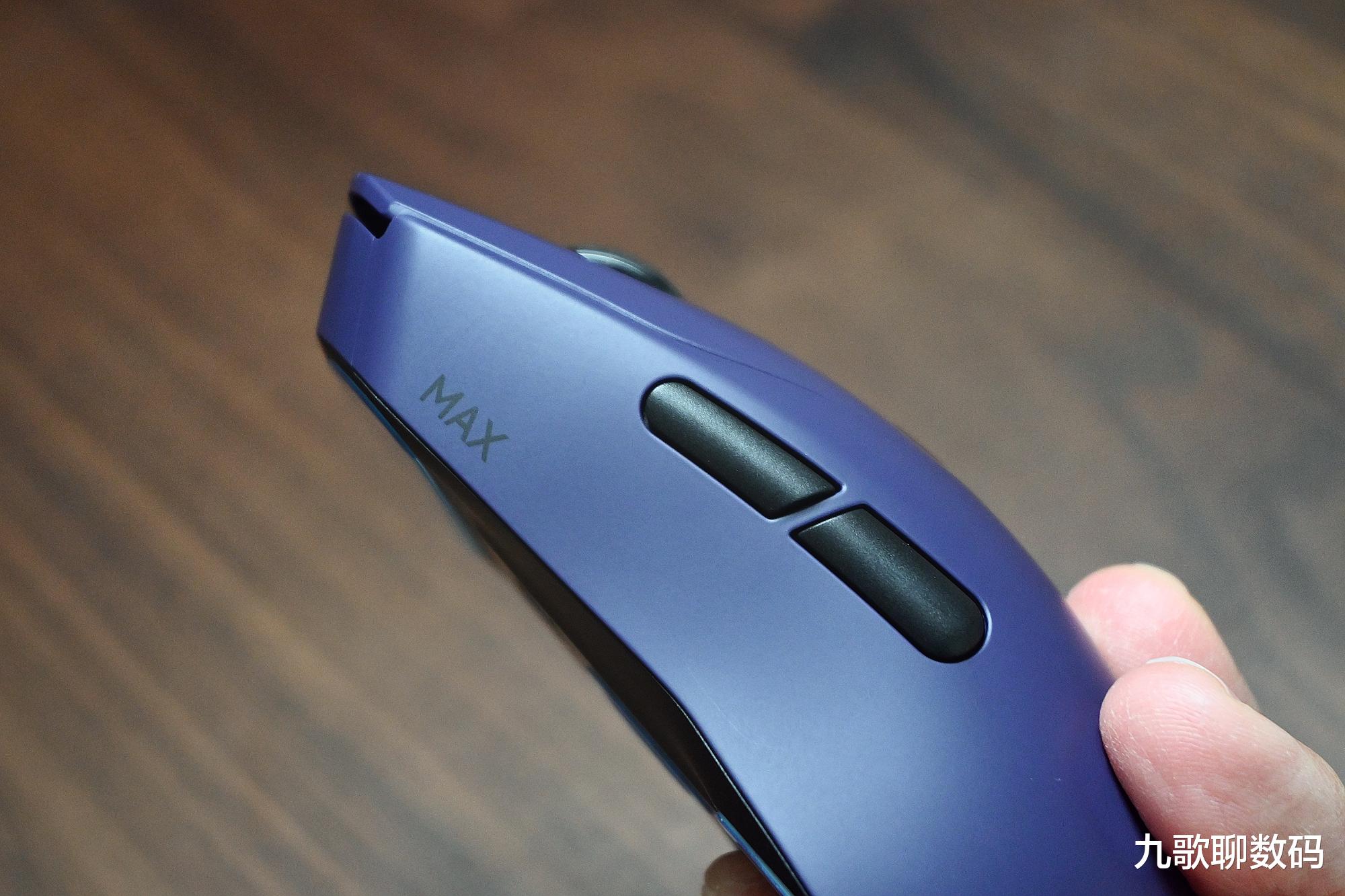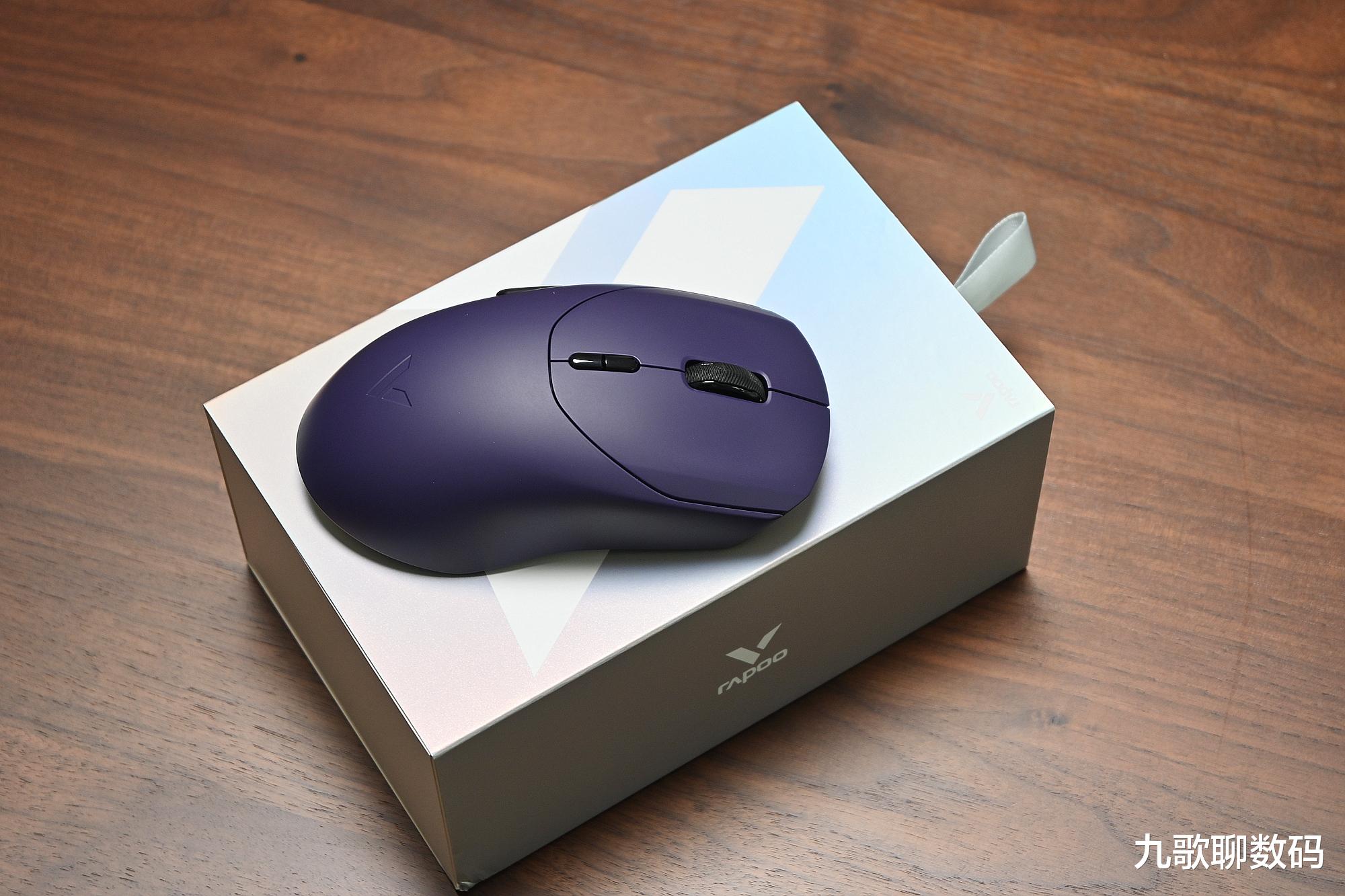 雷柏VT9 MAX共有星空黑、皎月白和电驭紫三种配色,我选的是紫色,与键盘搭配在一起很漂亮。鼠标的具体尺寸为125*39*30mm,适合像我一样的大手用户使用。得益于轻量化设计,重量仅为53克。长久使用也不会感到疲累。