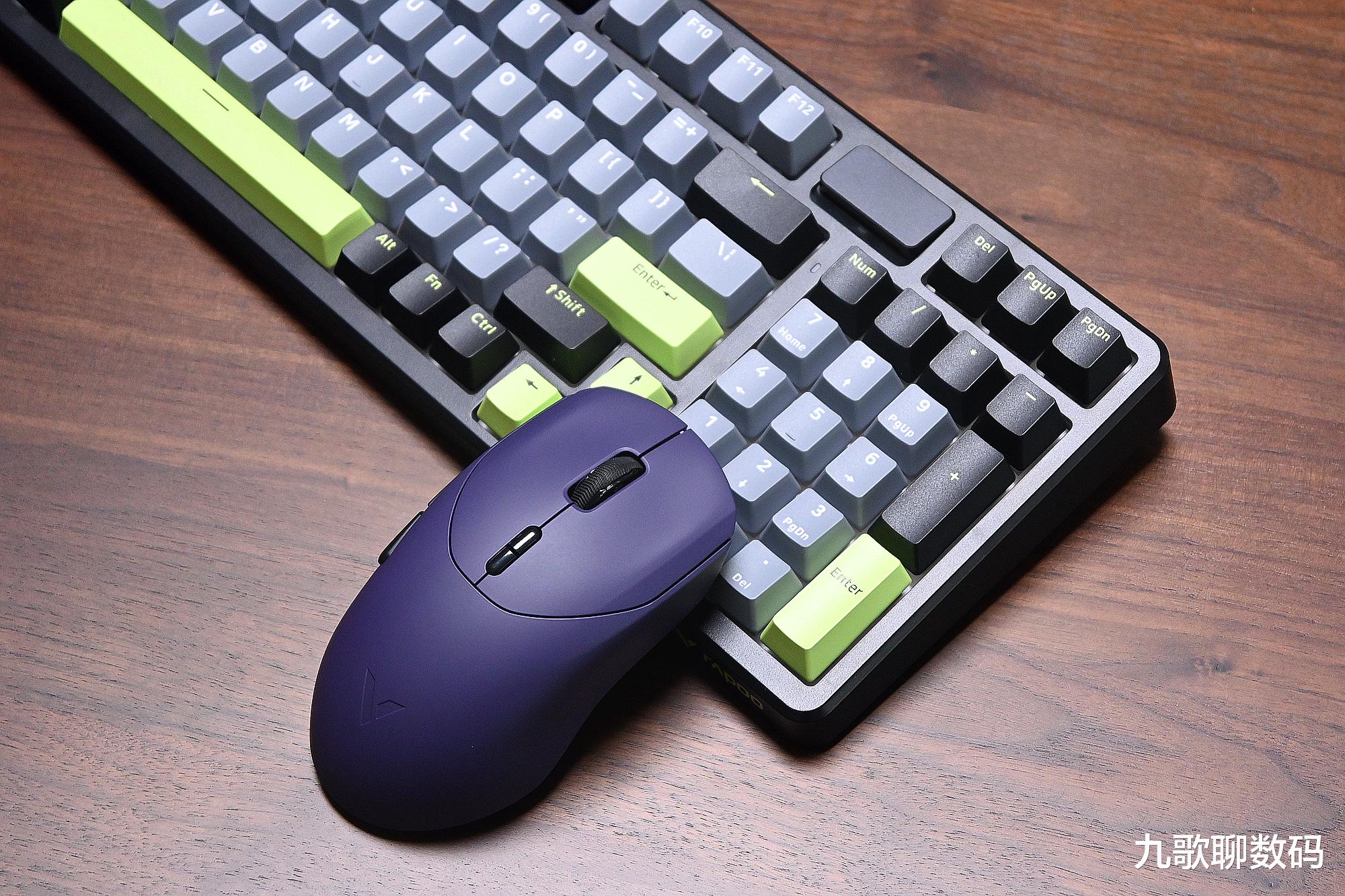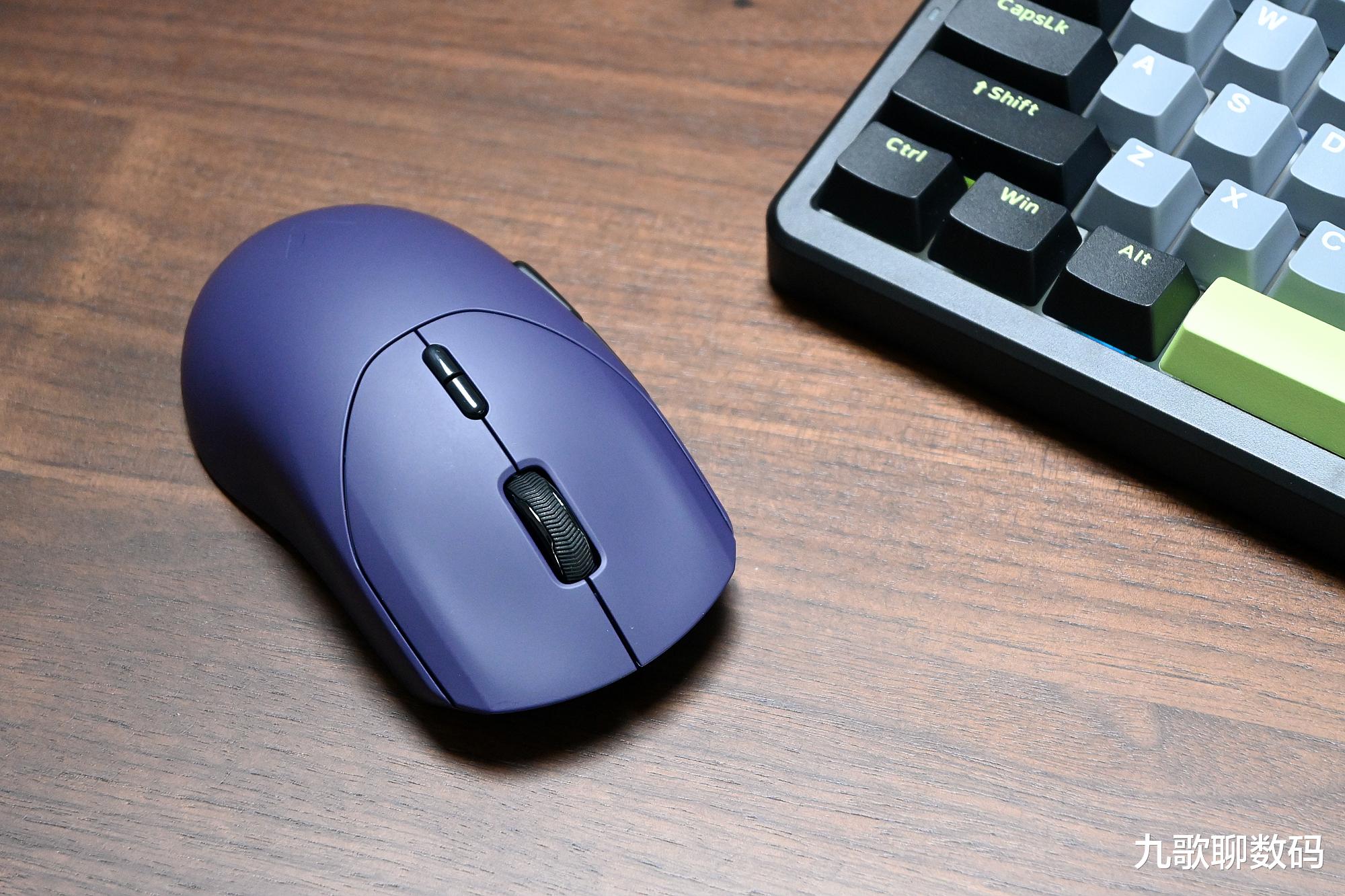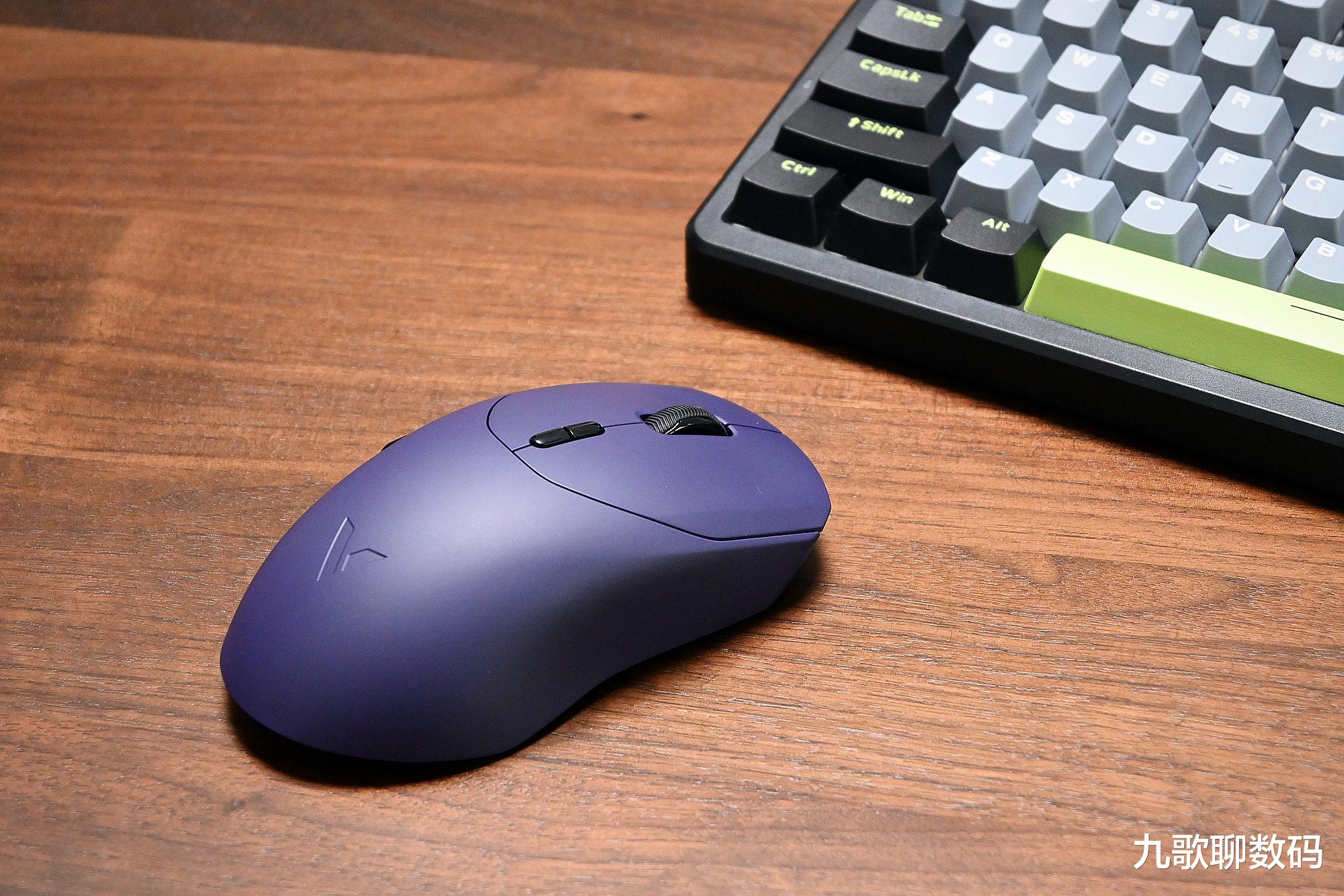 雷柏VT9 MAX共有星空黑、皎月白和电驭紫三种配色,我选的是紫色,与键盘搭配在一起很漂亮。鼠标的具体尺寸为125*39*30mm,适合像我一样的大手用户使用。得益于轻量化设计,重量仅为53克。长久使用也不会感到疲累。
