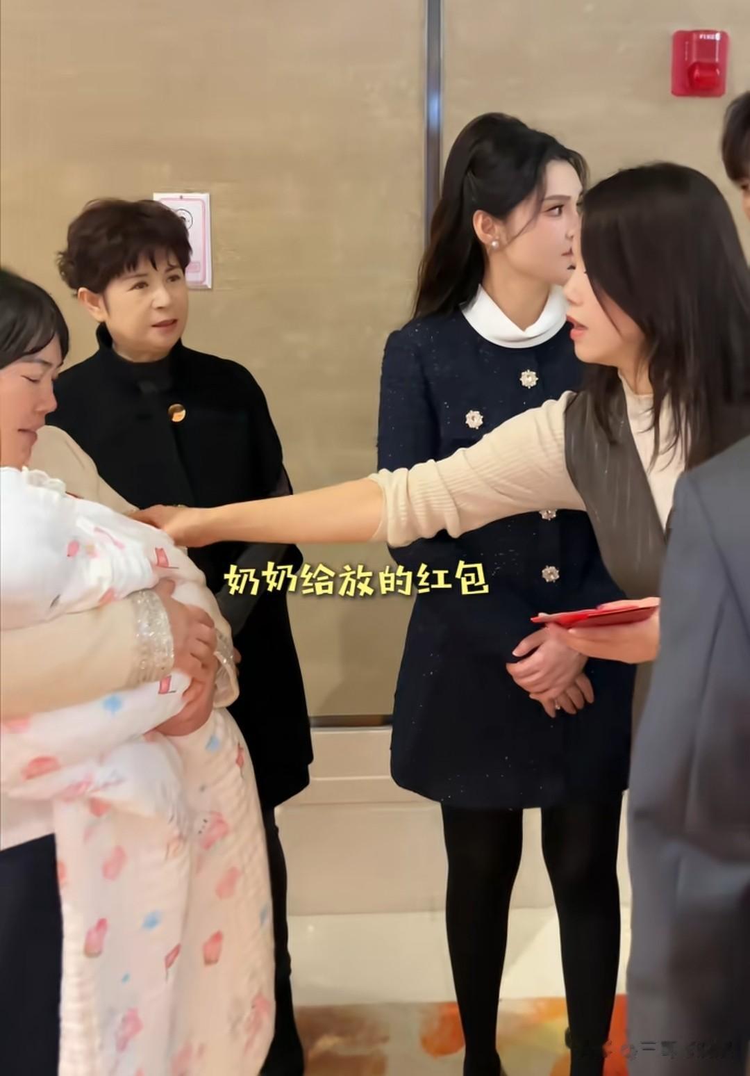 孩子奶奶早早就到达酒店忙前忙后,特别能干,看见孙女来了立马过来给孩子放红包,小麦穗简直是被全家人捧在手心的小公主。