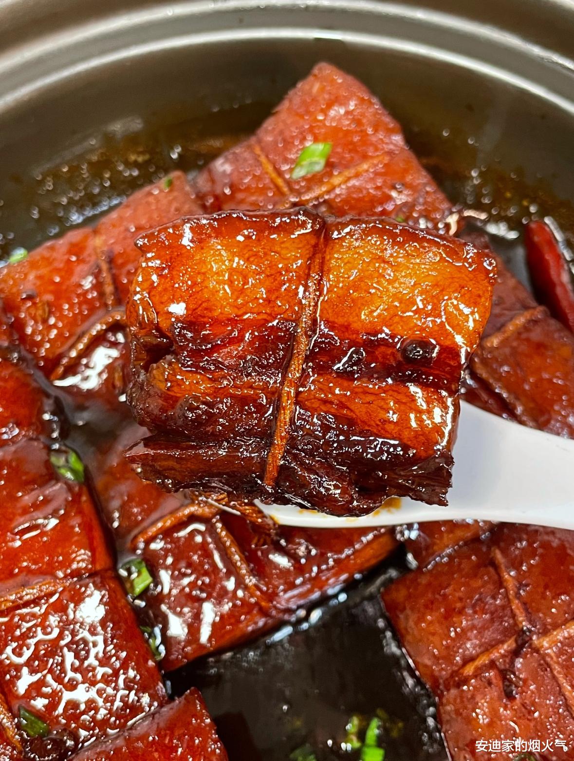 蒸好后倒扣在盘中,淋上剩余的汤汁,一道正宗的东坡肉就完成了。夹起一块放入口中,先是糖色带来的微甜,紧接着是酱油的咸香,然后是五花肉的软糯,多重滋味在舌尖层层绽放,让人回味无穷。