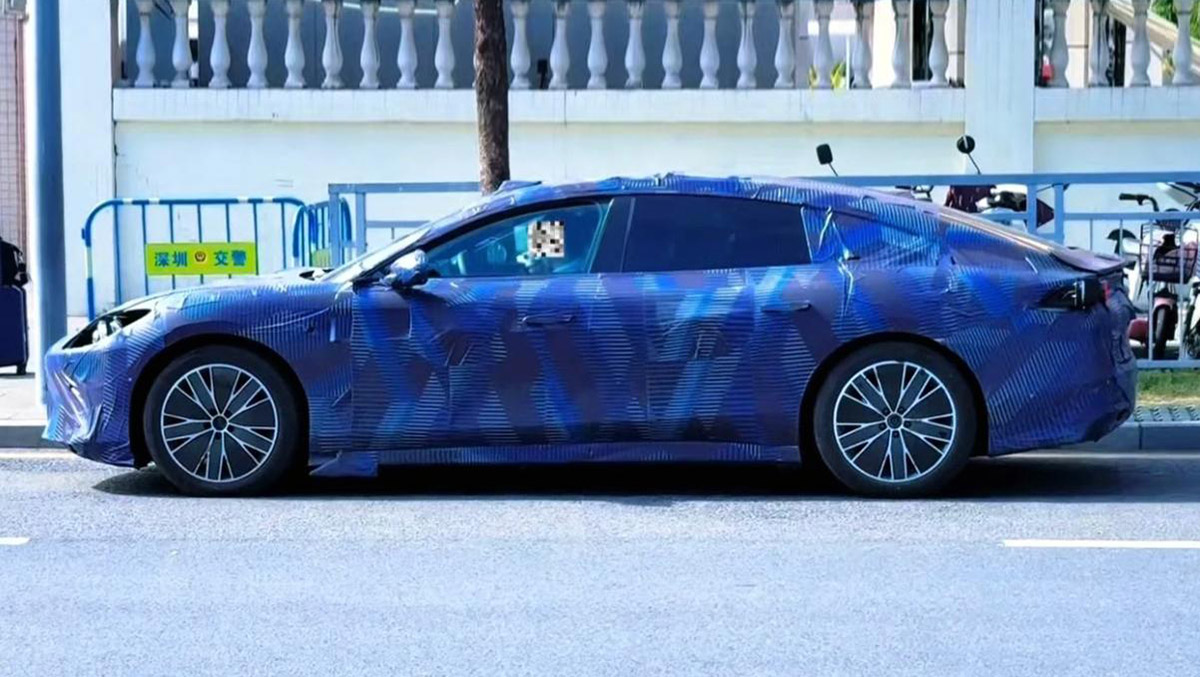 从曝光的谍照来看,“镁9”在设计上可以说走的是年轻运动路线,它采用了非常流畅的轿跑造型,车顶线条一气呵成,整体看上去既动感又时尚,车头部分设计得比较扁平,两侧大灯位置微微隆起,灯组轮廓呈现多边形,风格与腾势Z系列有些相似,显得锐利有神,前保险杠造型简洁而硬朗,两侧和底部还加入了突出的扰流结构,不仅提升了视觉张力,也暗示着它在空气动力学上可能有不俗表现。