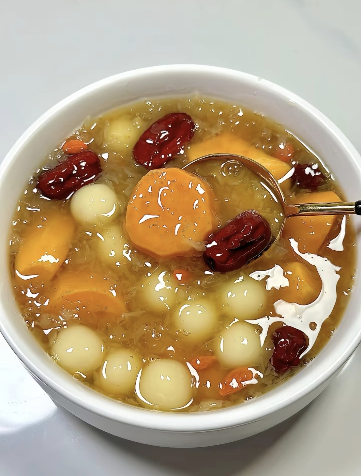 初春的午后,阳光透过窗棂洒在厨房的料理台上,空气中还带着一丝料峭的寒意。这时候,最让人想念的,莫过于一碗热气腾腾、甜润暖胃的家常甜汤。它不需要繁复的工序,也不必追求珍稀的食材,只用几样寻常之物,就能熬煮出满屋的温馨与满足。今天,就让我们一起走进厨房,亲手做一碗红薯圆子银耳羹。这碗羹,是记忆里的味道,是家的温度,更是抚慰身心的温柔慰藉。