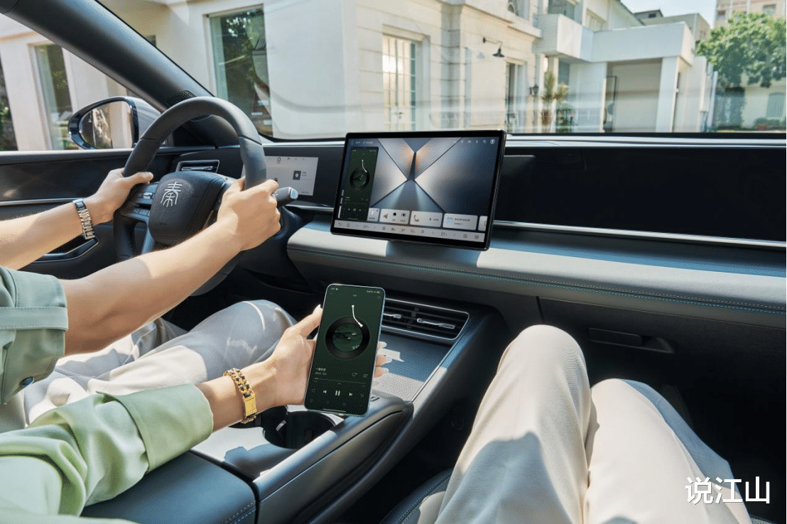车机更像个大平板了:DiLink车机系统功能一直很全,这次强调支持智能手表解锁(主流品牌都行)、手机导航地址能直接甩到车机上、手机音乐会员车机也能用。还有些娱乐功能,比如不用麦克风就能在车里K歌,等人无聊时能玩个成语接龙什么的。说白了,就是努力让车机不只是个导航听歌的工具,增加点可玩性。