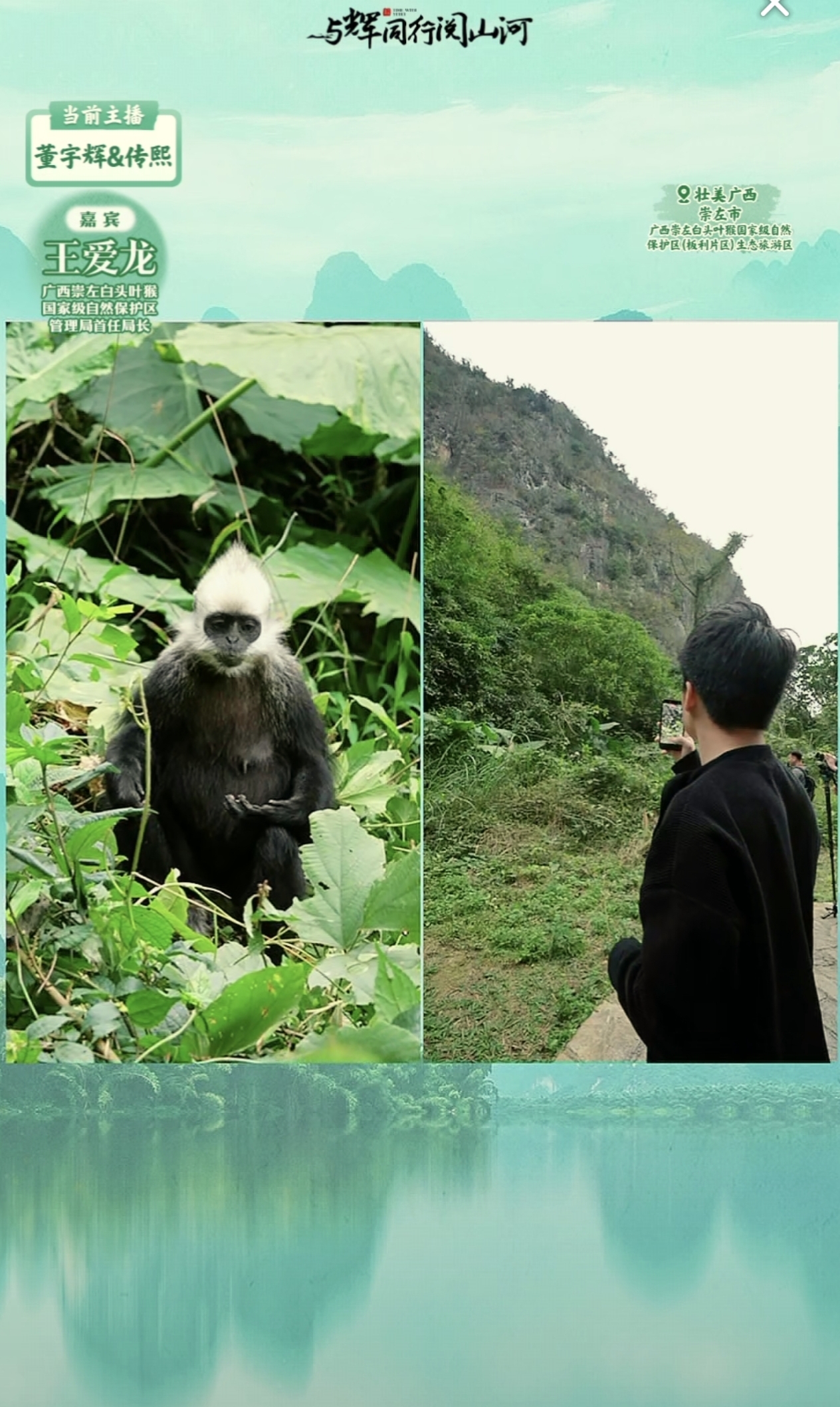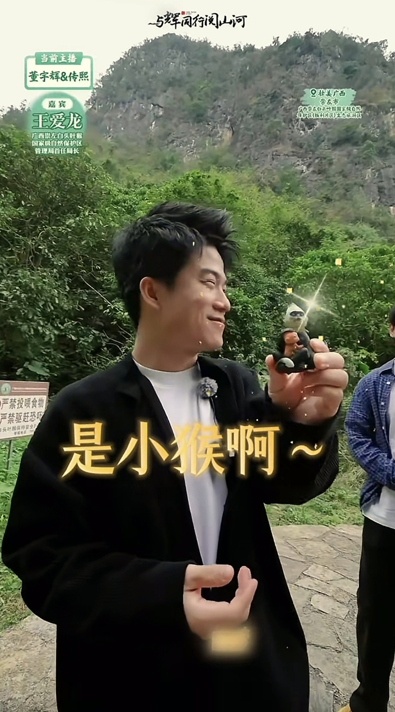 随后带大家去参观的“白头叶猴国家级自然保护区”也一样让大家感到惊艳,想不到在崇左山区里还生活着比大熊猫还稀少的一种猴类,并且还保护的这么好,当宇辉看到白头叶猴也忍不住拿出手机疯狂拍照录视频,可见宇辉也是一个很喜欢动物大暖男。