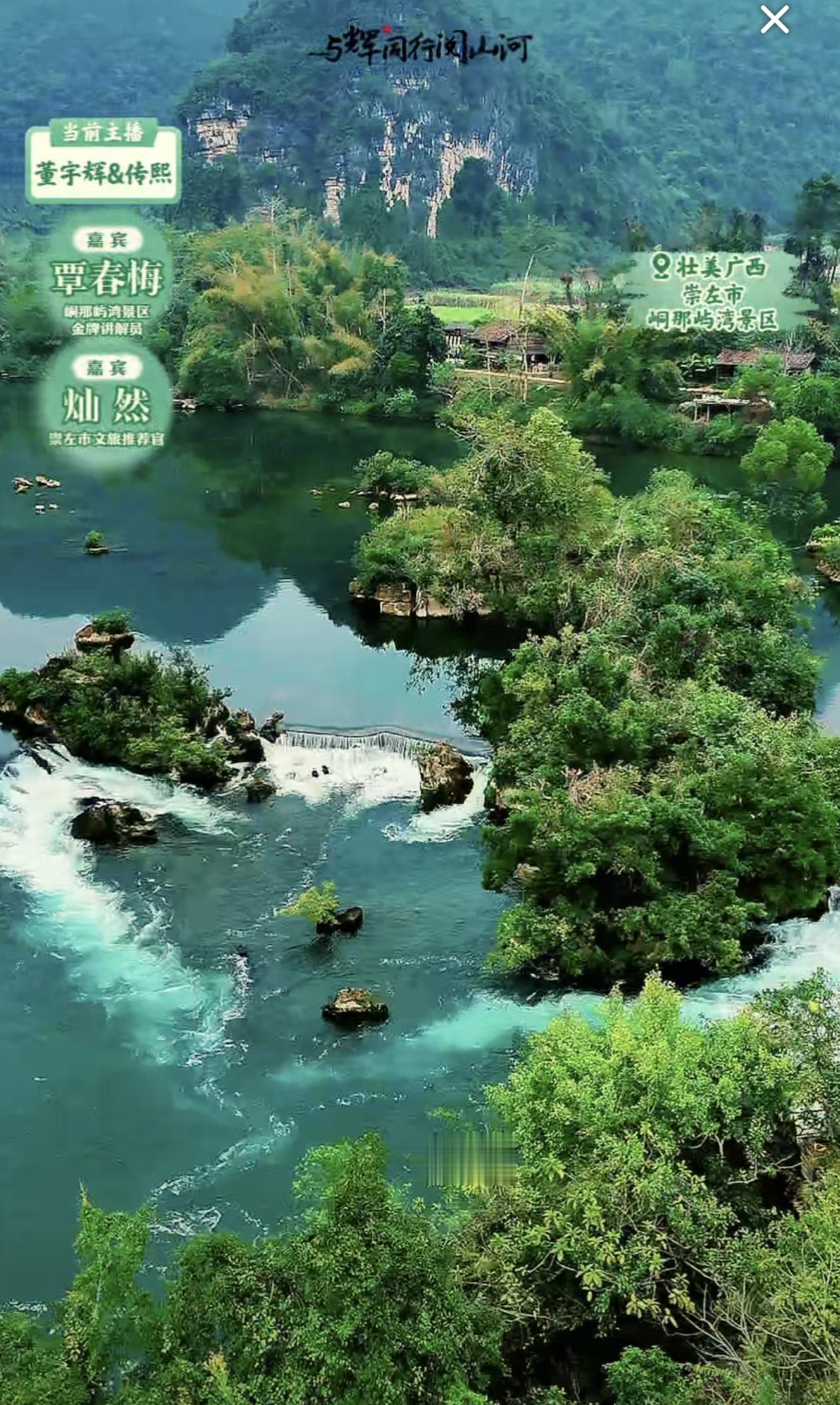 在昨天最后一天了行程中,宇辉带领团队小伙伴们转场到了广西崇左这座边境城市,在看到“峒那屿湾景区”那宛若仙境的秀美山水风光后,相信当时直播间里的不少观众都被震撼到了!