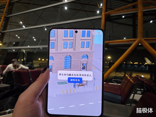(图注:在机场候机,玩无网小游戏《狙击外星人》)