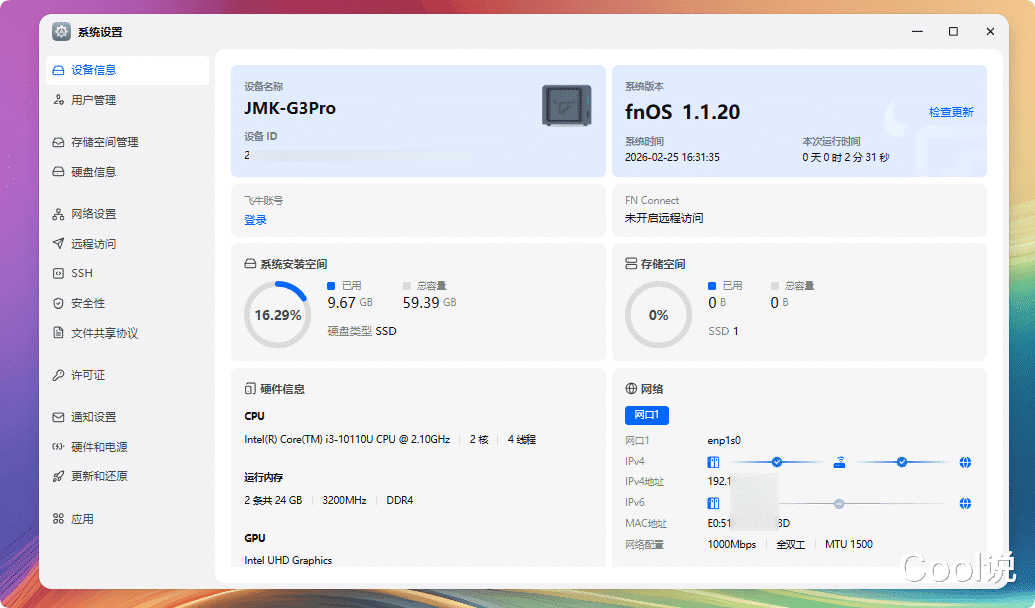 当然,前面我们说过,选择这款主机是为后面做NAS来准备的,现在刷NAS系统真的很方便,属于“有手就会”的。我选择的是飞牛OS,这个系统不管是功能还是稳定性上都非常不错。