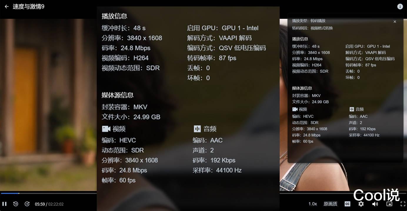 再就是i3-10110U的解码能力也不错,毕竟这是Intel GPU的强项。不管是VC1、H264还是HEVC、VP9都能轻松硬解,4K、8K都没有压力。