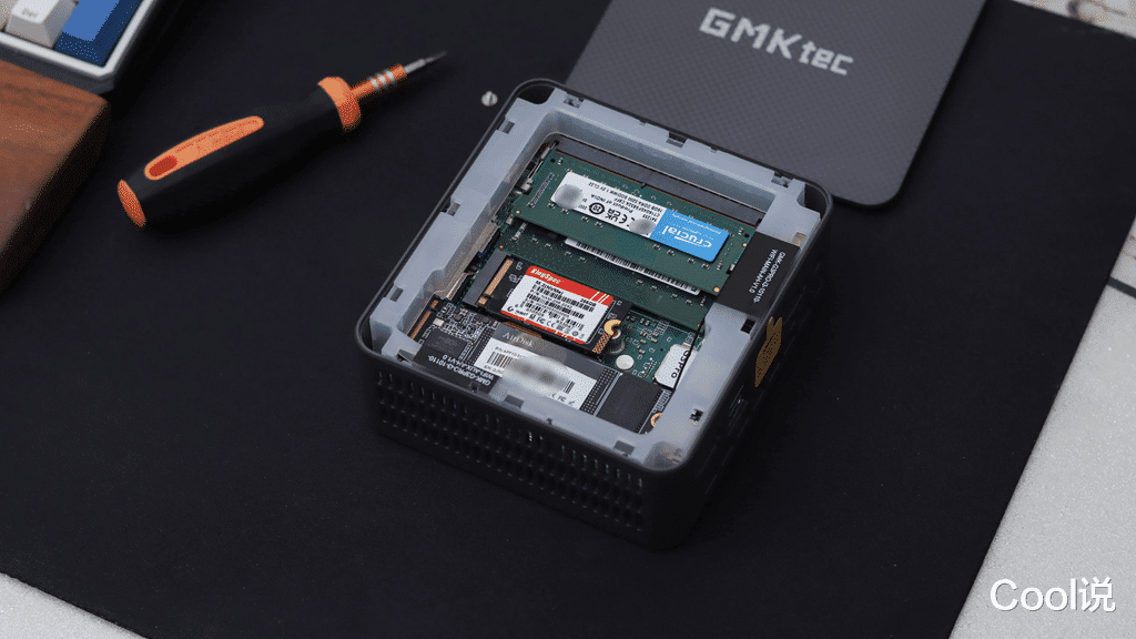 由于我有闲置的硬盘和内存,所以这次选的准系统版,需要注意的这款主机的内存规格为DDR4 SO-DIMM,也就是常见的笔记本内存。硬盘则是支持一条M2 2242 SATA(最大2T)、一条M2 2280 PCIe(最大4T)。