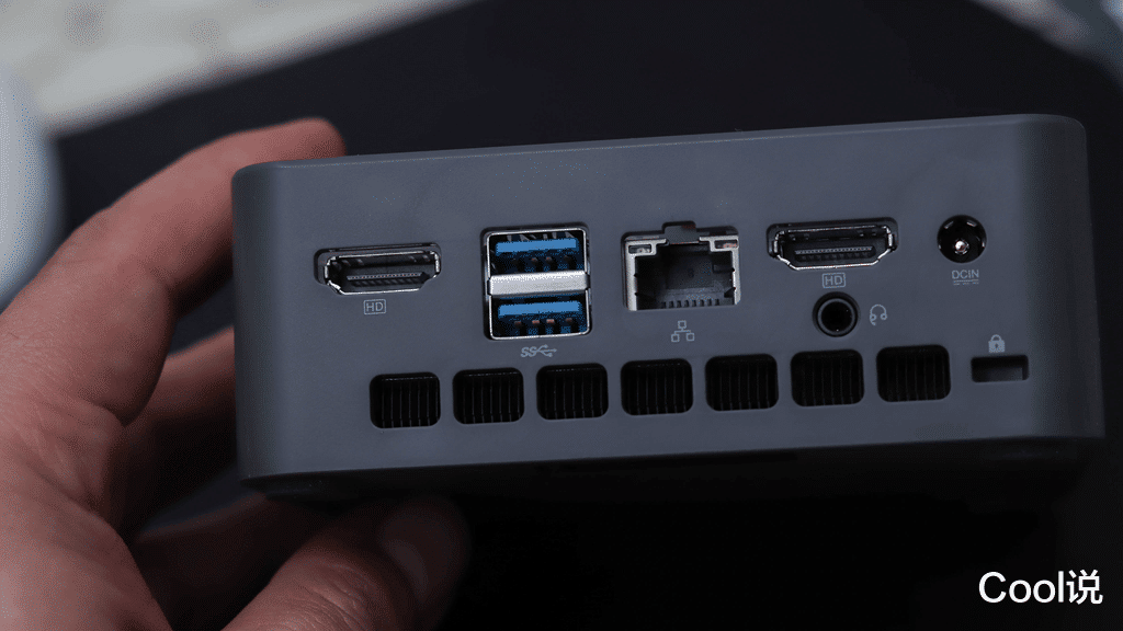 再看背面,背面除了设计了一个3.5mm耳机插孔和一个2.5G网口之外,还设计了两个USB3.2接口以及两个HDMI(4k@60Hz)接口,除了接入更多的外设之外,也为今后的双屏异显、nas、影音媒体等打下了基础。