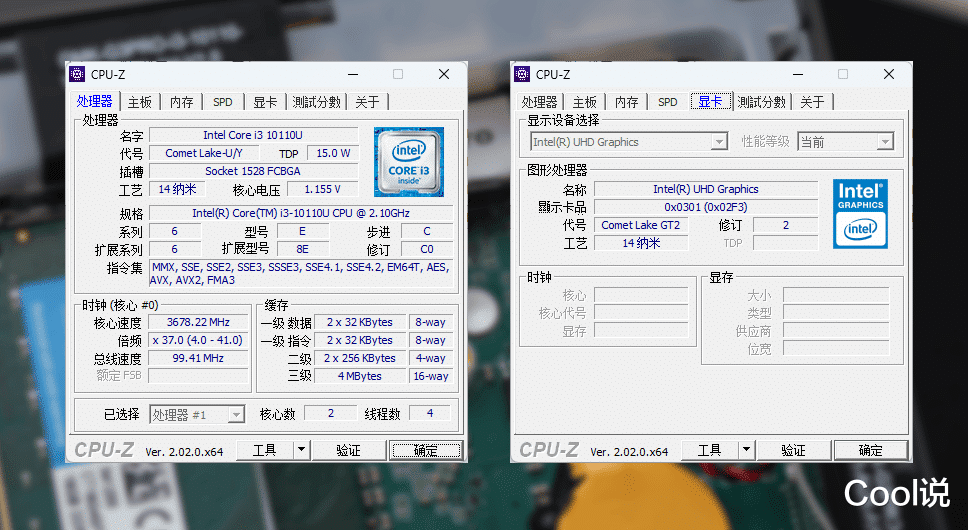 对机器大致有个了解之后呢,接下来咱们进行性能的体验。英特尔i3-10110U这款处理器是一个十代U,双核心四线程,主频为2.1GHz,最大睿频4.1GHz,TDP为15W,是一些低价移动平台经常采用的配置。