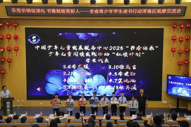秋风送爽,书香致远。9月25日由辽宁教育学院主办的“示范引领促深化 书香赋能育新人——全省青少年学生读书行动浑南区观摩交流会”在浑南八校顺利举行。辽宁教育学院省教育装备研究与发展中心主任任雪松、辽宁教育学院省教育装备研究与发展中心装备管理部部长王明浩、市教育研究院教育装备研究部宋琦、浑南区教育局党组成员浑南区人民政府教育督导室主任杜成龙及来自各市教育行政部门、省属高校读书行动负责人、浑南区各中小学校阅读工作负责人,共计150余位,齐聚八校,共赴一场以书为媒的美好之约。与会嘉宾共同参观了我校书香校园文化建设,观看特色阅读课程展示。