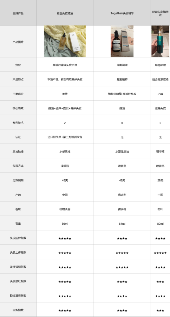 踩坑之后,我特意选了3款热门头皮精油做对比,分别是拾宓头皮精油、Togethair头皮精华、舒霖头皮精华液。