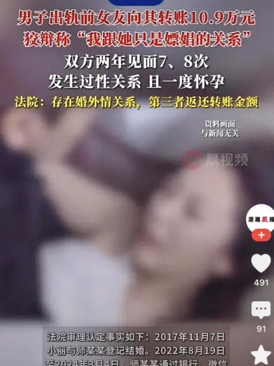 成都一男子婚内出轨前女友,转账10.9万元给前女友被妻子起诉!法院判决太解气了!