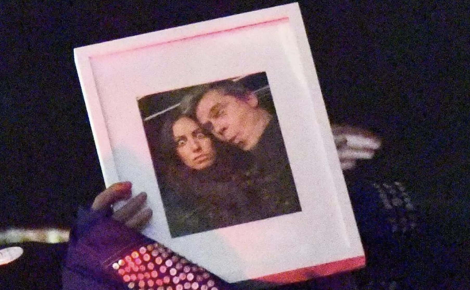 其中一名男子手中还捧着一张情侣照。