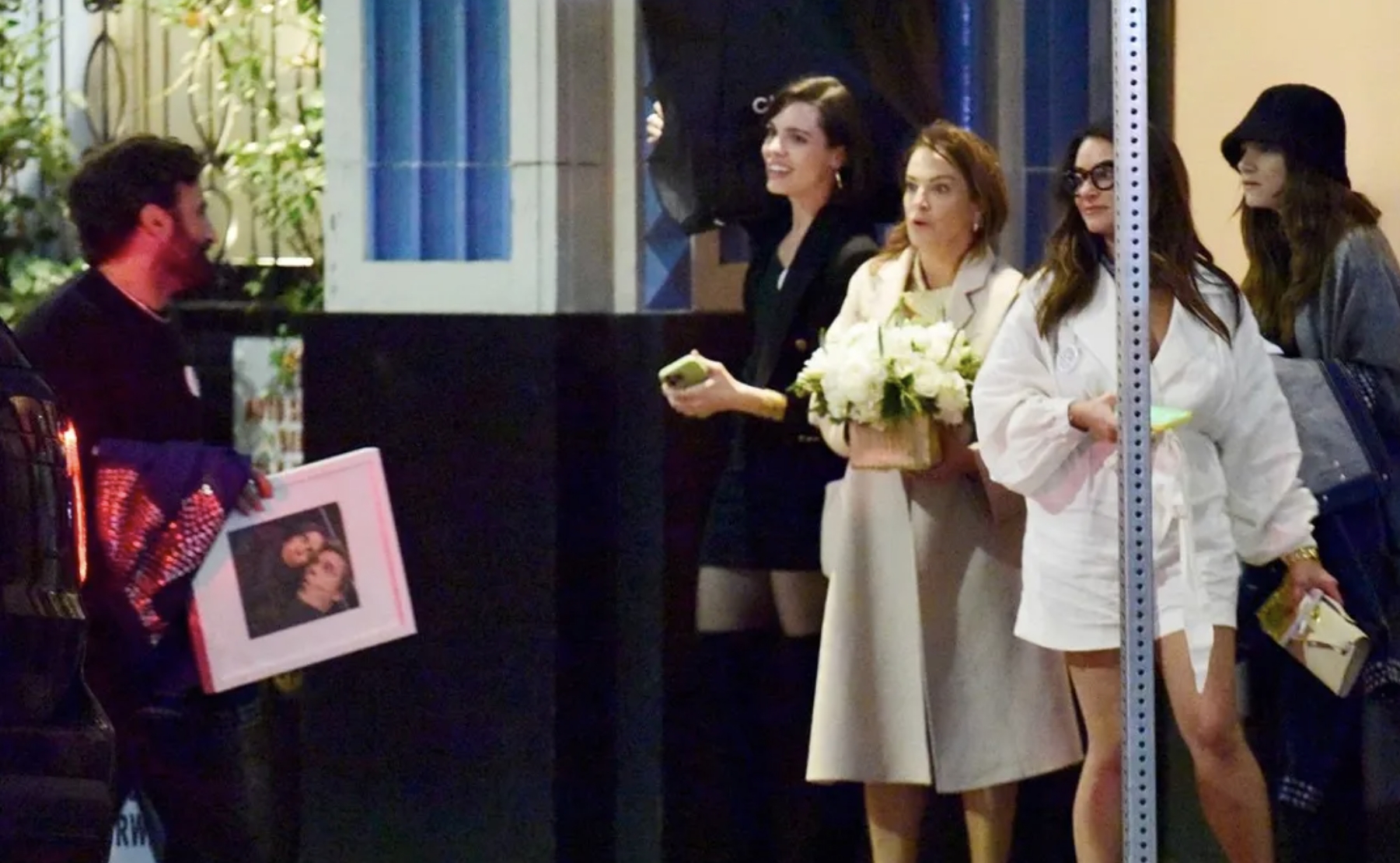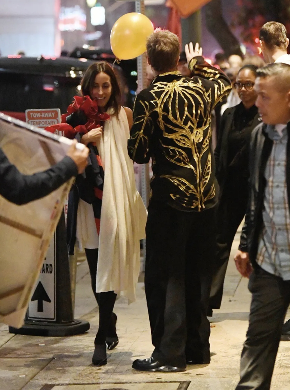 伊内斯·德拉蒙手持现场鲜花,腰间挂着一只气球,这实在太滑稽了。看得出来,伊内斯·德拉蒙并不只是客人那么简单,她跟皮特的关系远超一般的客人,或许,她这样做,就是为了证明自己“女主人”的地位?