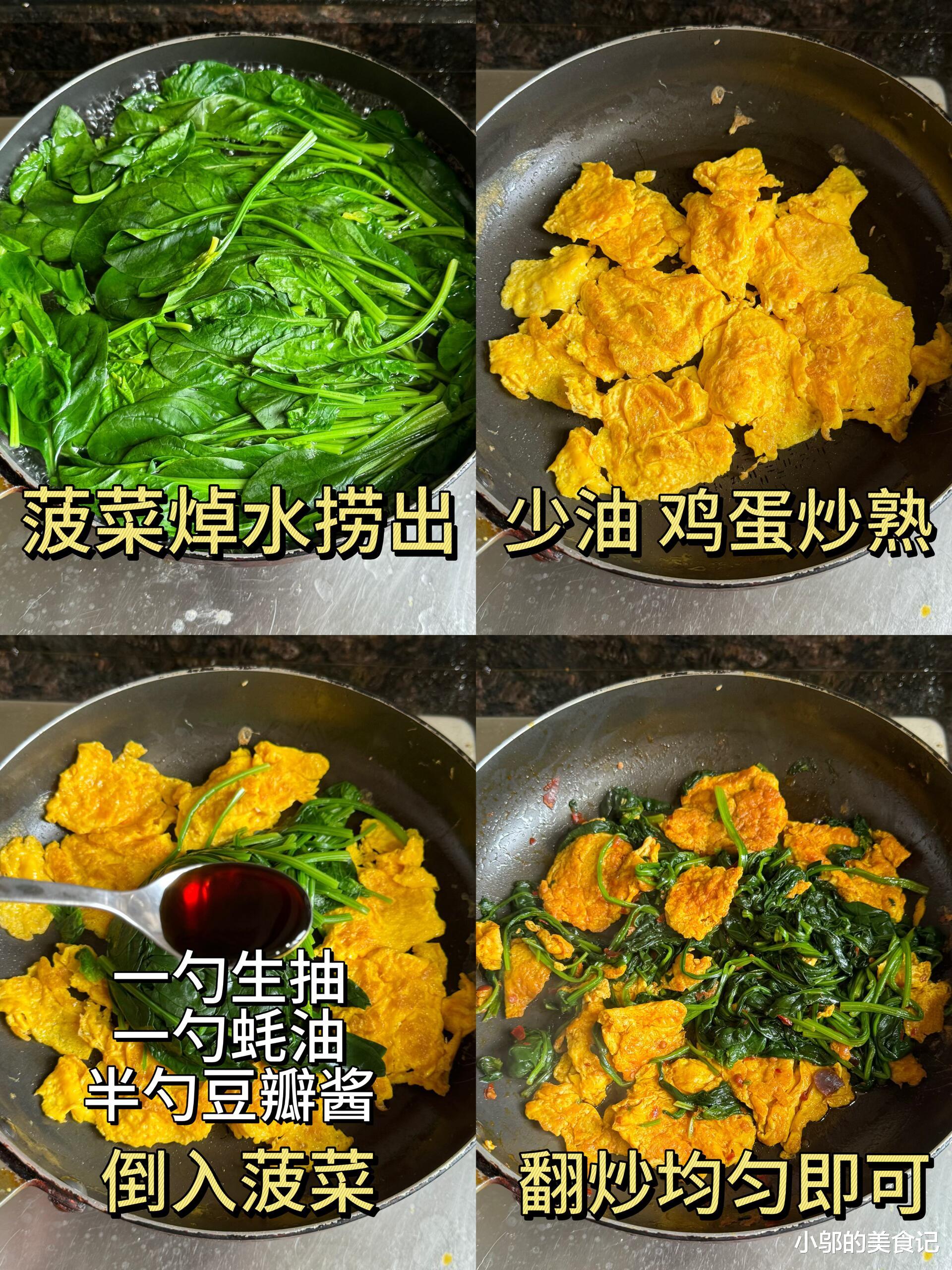 这道菜的妙处在于,菠菜的清爽中和了鸡蛋的醇厚,鸡蛋的鲜香又提升了菠菜的口感。焯过水的菠菜不再涩口,反而带着淡淡的甜味,和嫩滑的鸡蛋一起,每一口都是春天的味道。无论是配米饭还是配粥,都让人吃得停不下来。