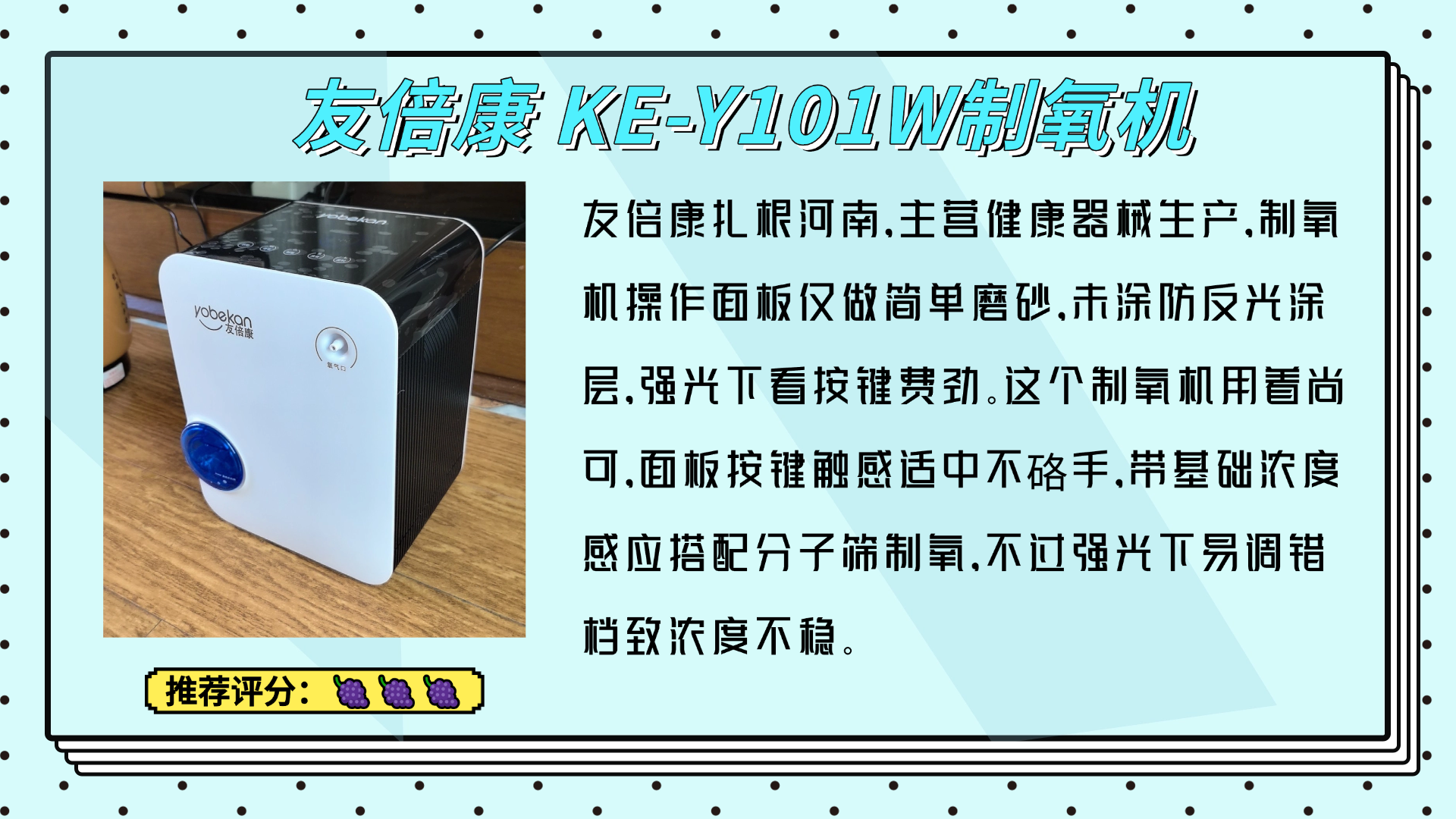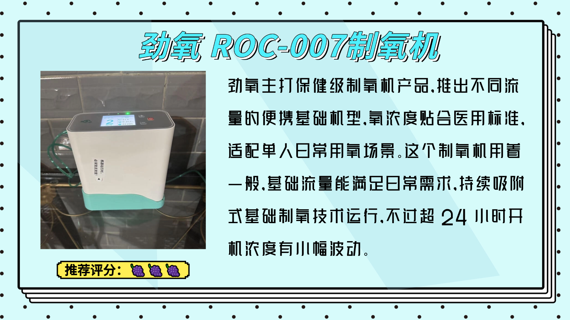 还有人问制氧机功能是什么,其实它的核心功能很简单,就是过滤分离空气,提取出浓度合格的氧气,满足日常吸氧使用,操作大多比较简单,开机就能用,部分机型还带有基础的调节功能,适合家庭日常放置使用,没有复杂的多余设计,选的时候重点看实用性就好,大家可以看看下图的测评报告。