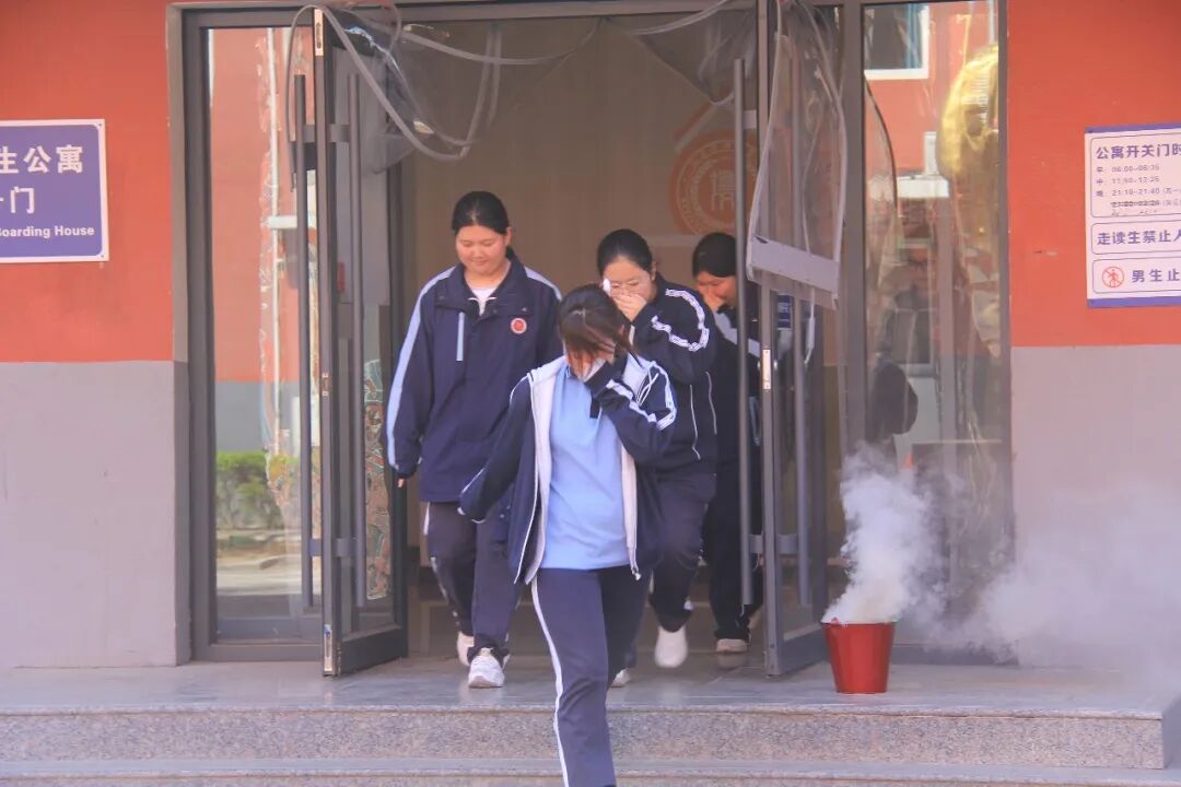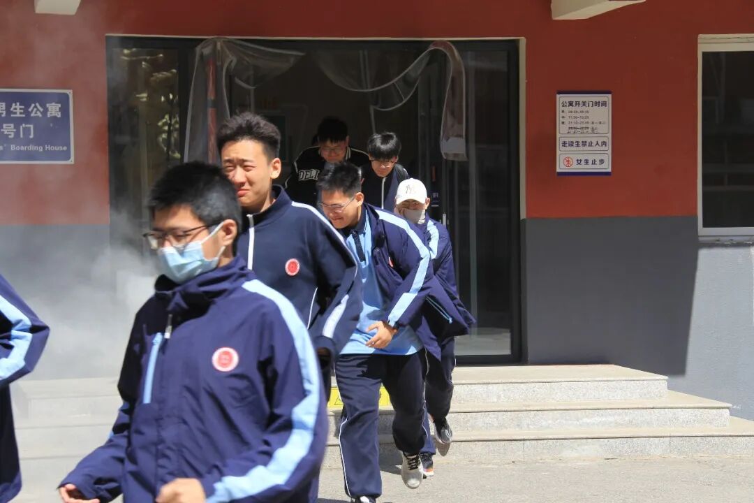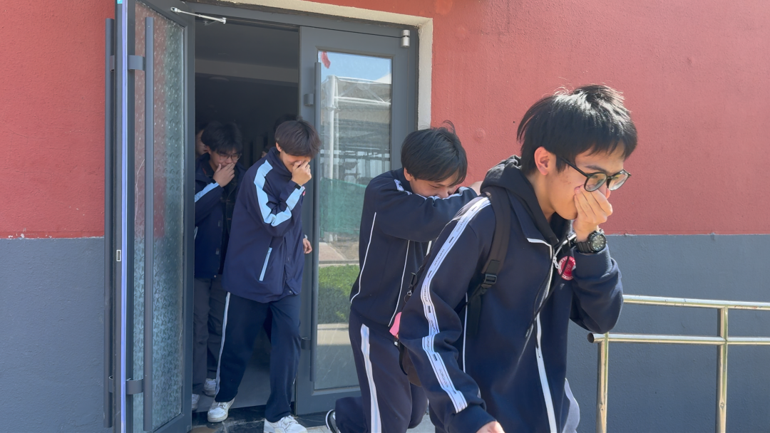 中学部全体住宿生迅速响应,在班主任、宿管老师及安全岗人员引导下,弯腰捂鼻、快速有序撤离宿舍区。