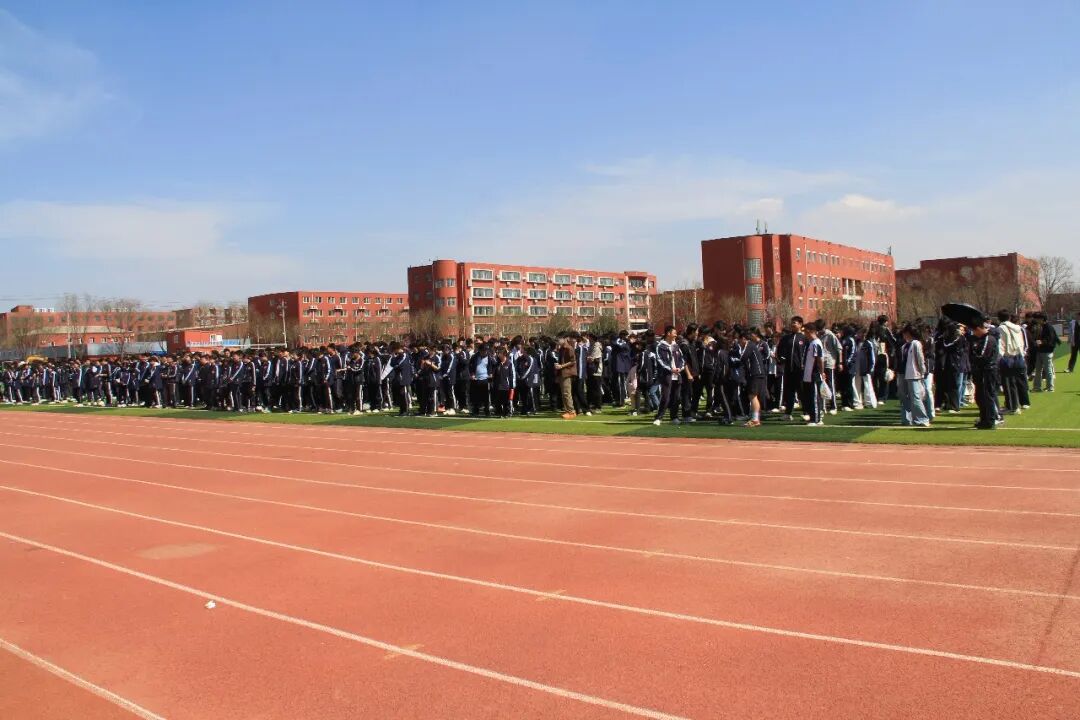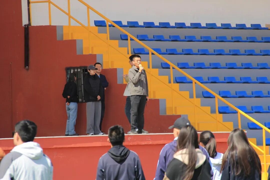 集结完毕后,德育主任马奎在操场现场作总结讲话。