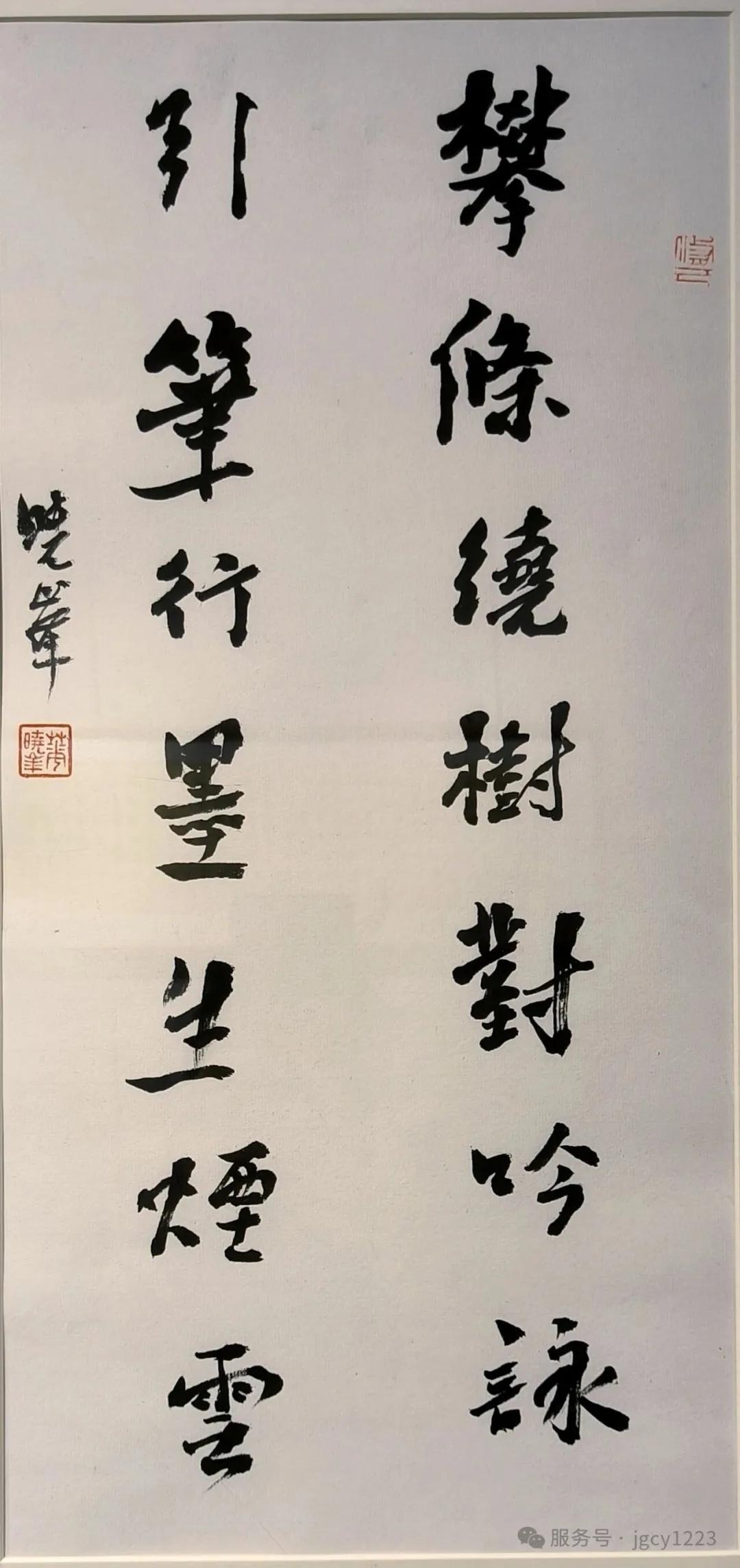 其中华晓峰书法作品16幅,唐典贵书法作品5幅、绘画作品14幅。两位艺术家同出什邡文脉,皆以传统为根、以书入画,风格却各有千秋、相映成趣,两人一尚清逸灵动,一崇雄浑严谨,共同展现巴蜀书画的当代神采。