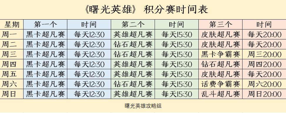 该时间表由攻略组根据每天的变动总结而出,仅作参考,实际情况请以游戏为准。