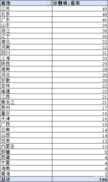 北京是当之无愧的“王者”。前50名13所,前100名32所,均为全国第一。前500名总数北京只有48所,落后于江苏的49所。这说明北京的高等教育是“高精尖”模式:顶尖大学高度集中,但普通院校的数量并不算最多。